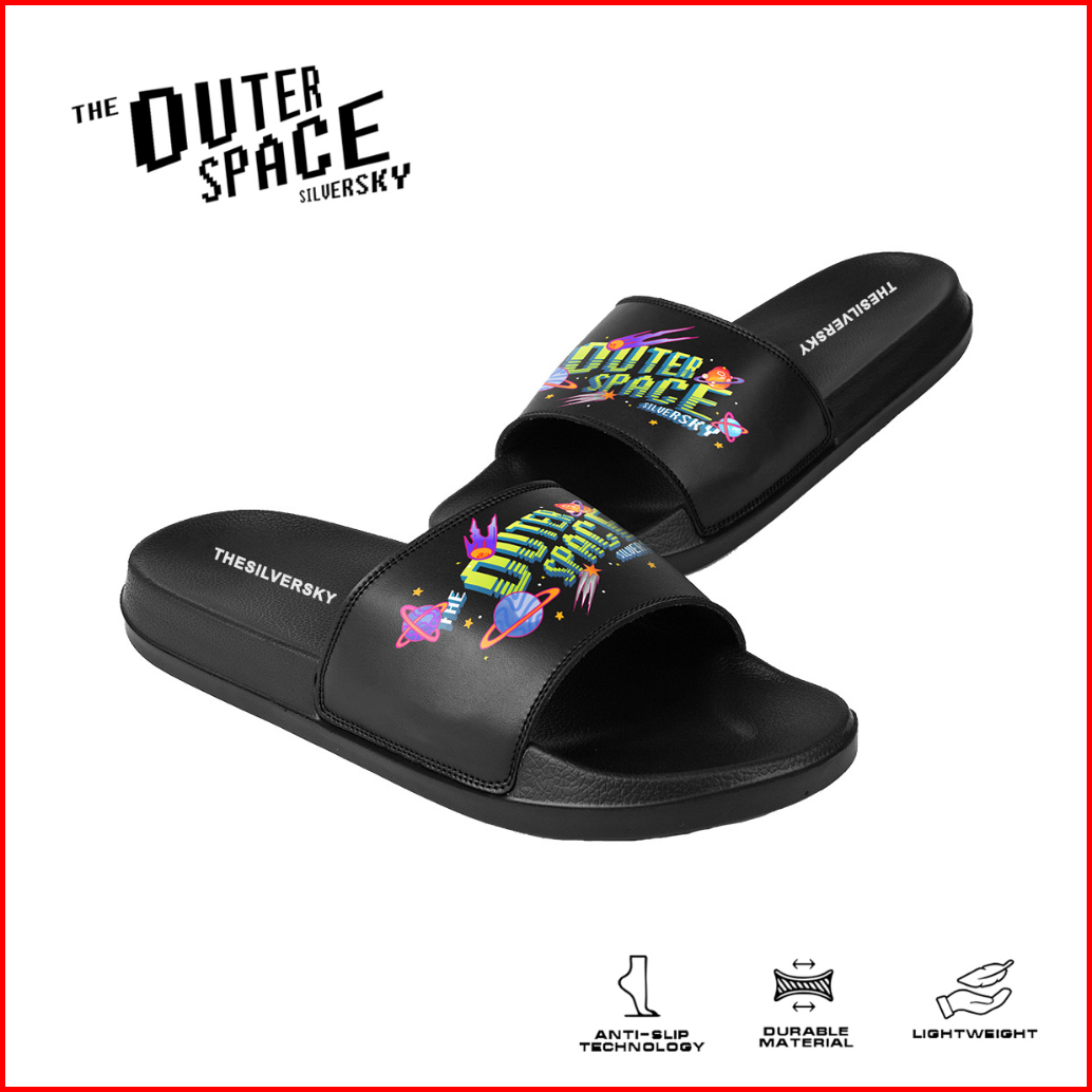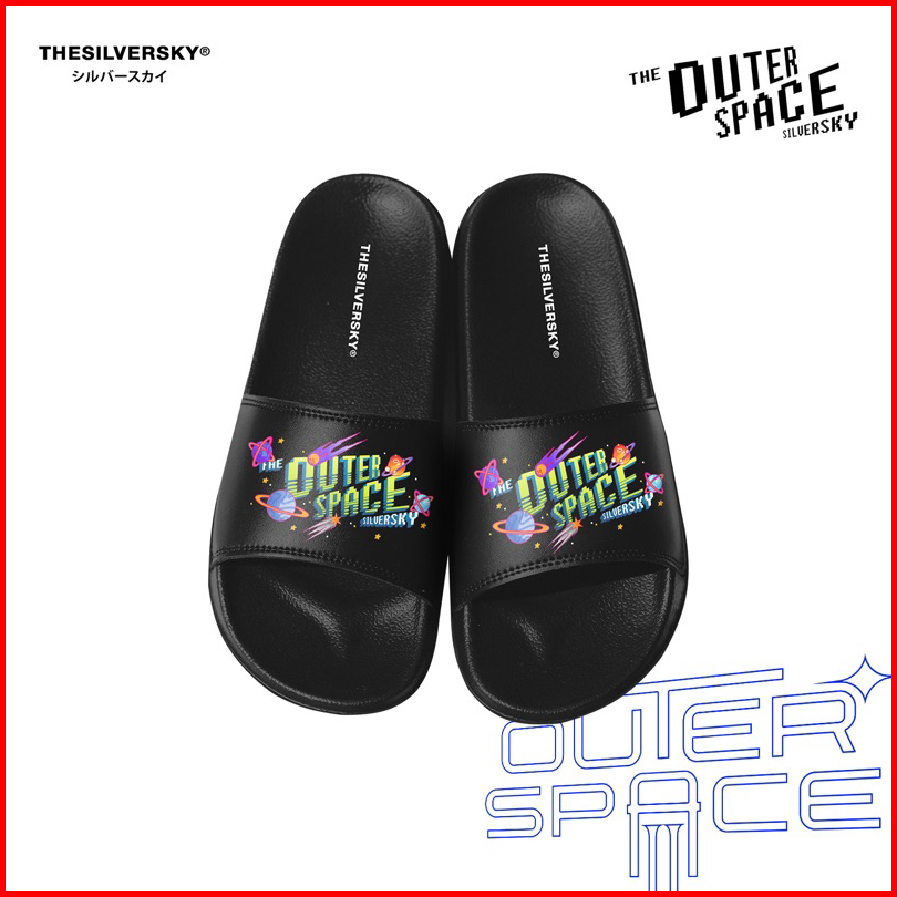 Thesilversky Neon Outer Space V2 Black Slides Premium Slip On Kids Adult Korean Sandals
