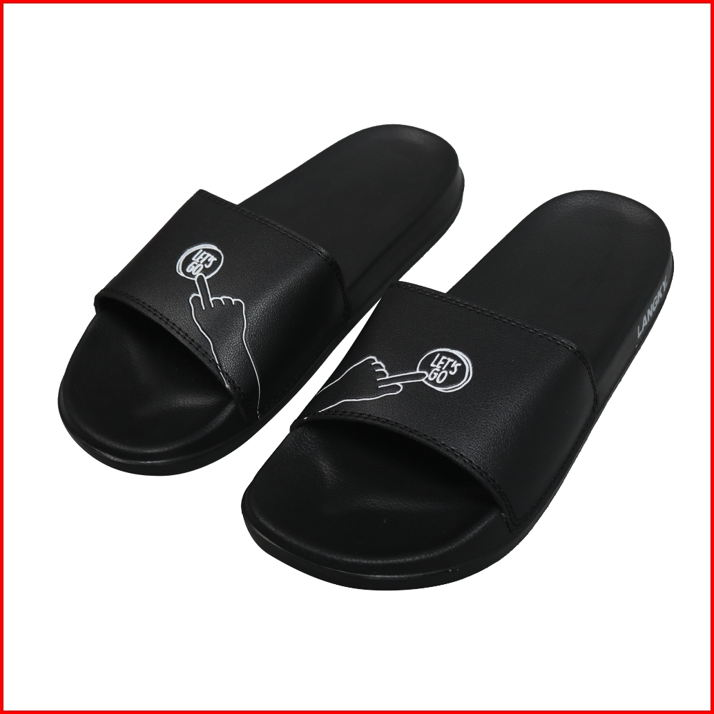 Sandal Selop Pria Wanita Terbaru Langky Slide Flip Sysl Borino Hitam