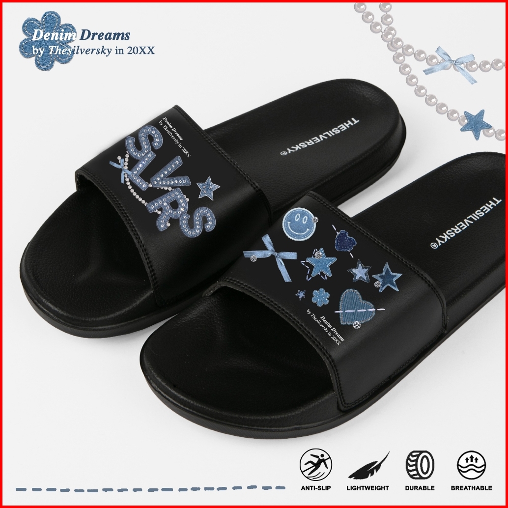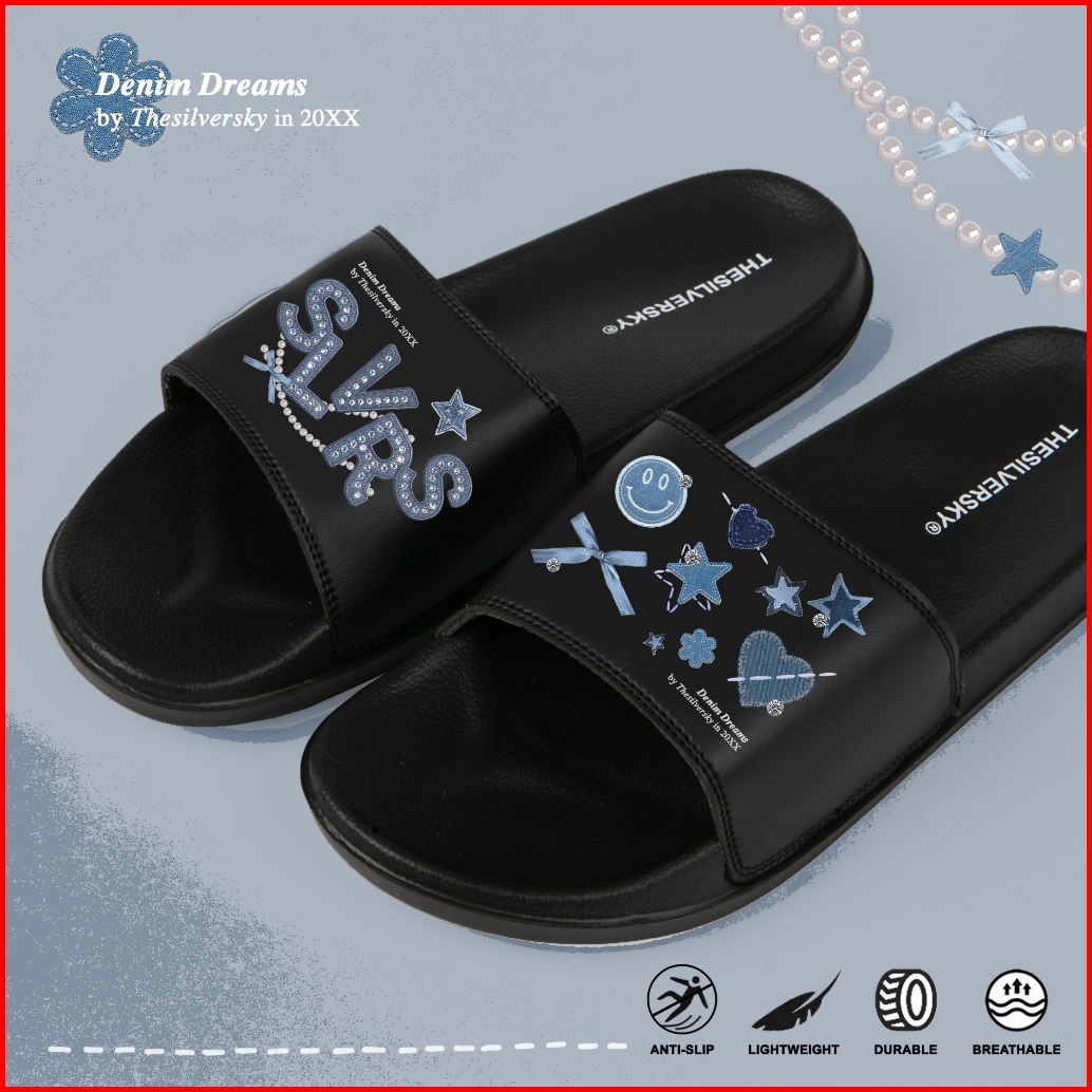 Thesilversky Denim Dreams Sandal Slide Premium Slip On Wanita Korea Jeans New