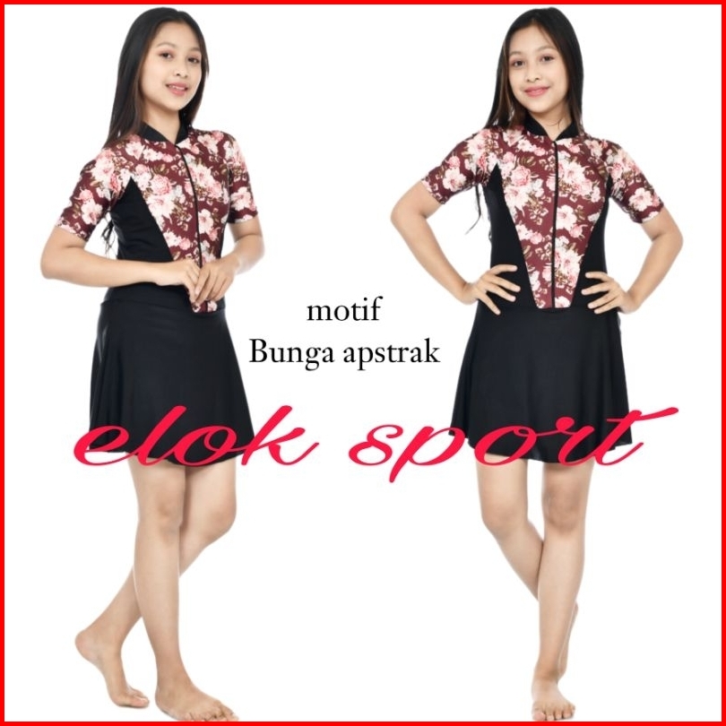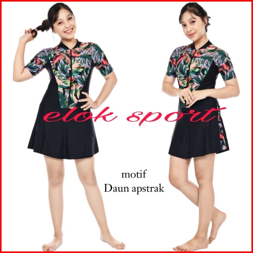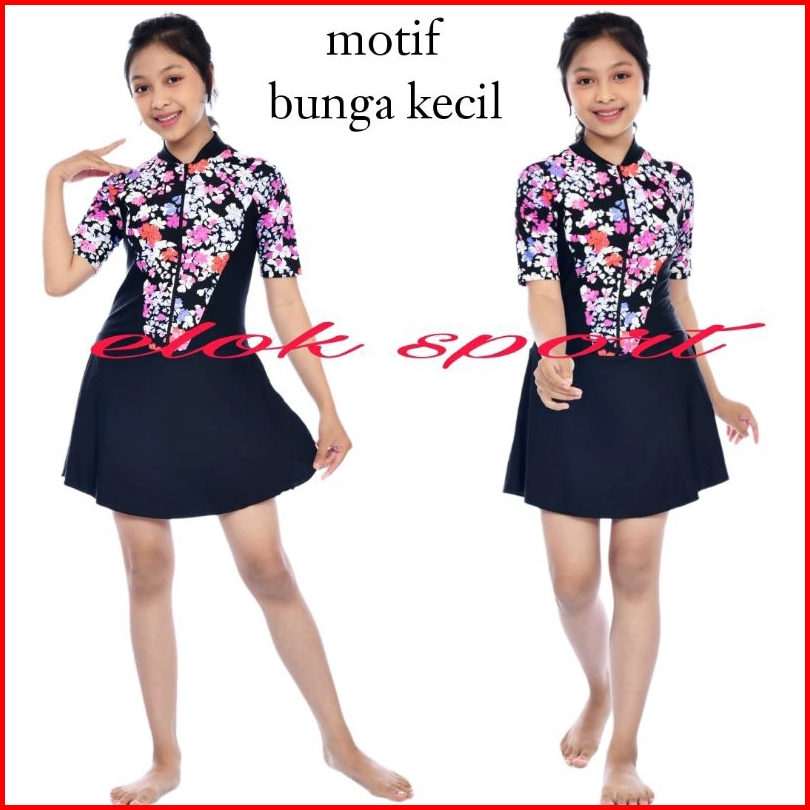 Baju Renang Wanita Baju Renang Abg Dan Remaja Usia 10-15 Tahun Baju Renang Diving Dv-rok Abg-remaja Tangan Pendek Motif