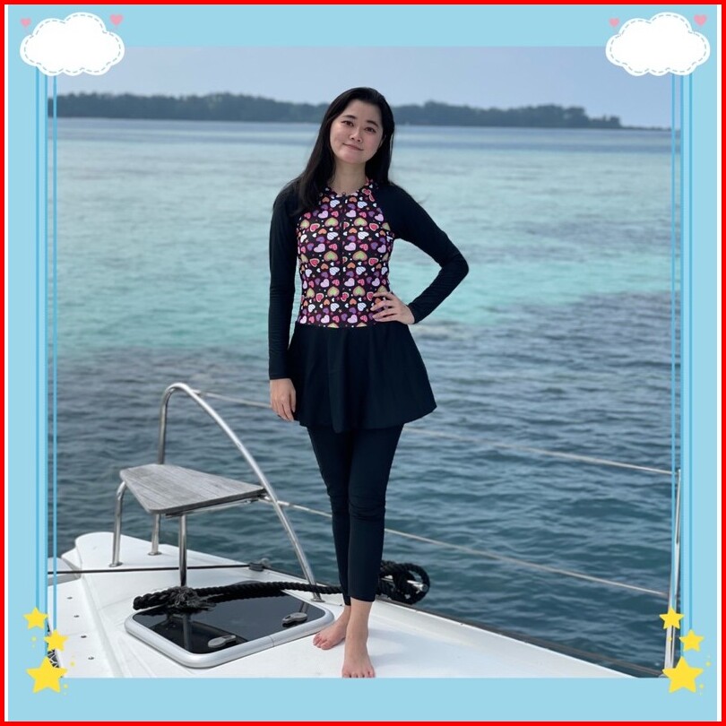 39054 Baju Renang Dewasa Hijab Muslim Lengan Panjang Celana Antiuv Nyambun Motif Cewek Wanita