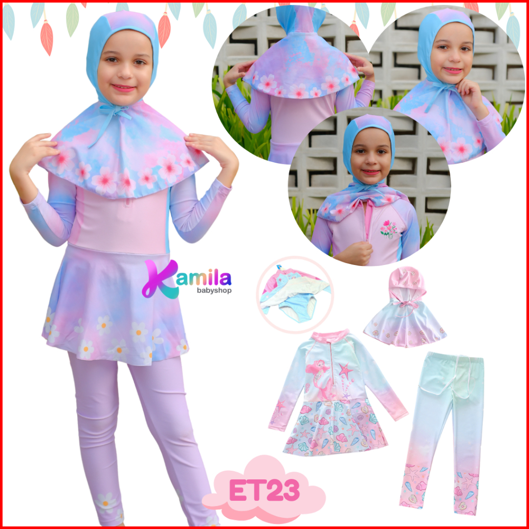 Et23 Baju Renang Anak Perempuan Hijab Muslimah Jilbab