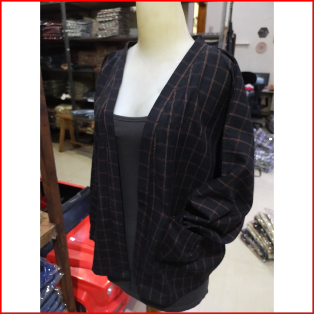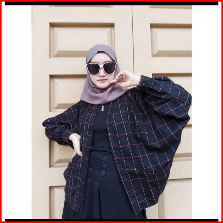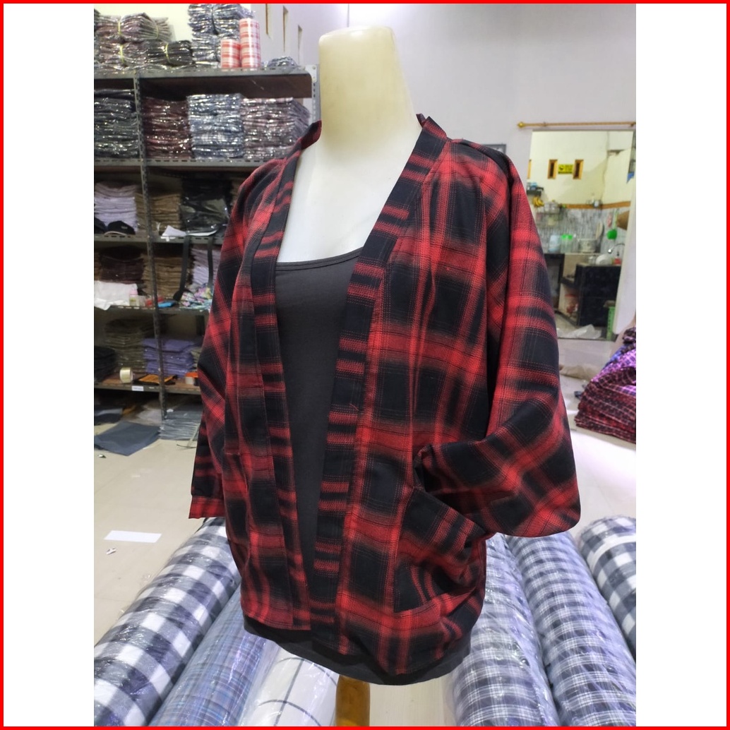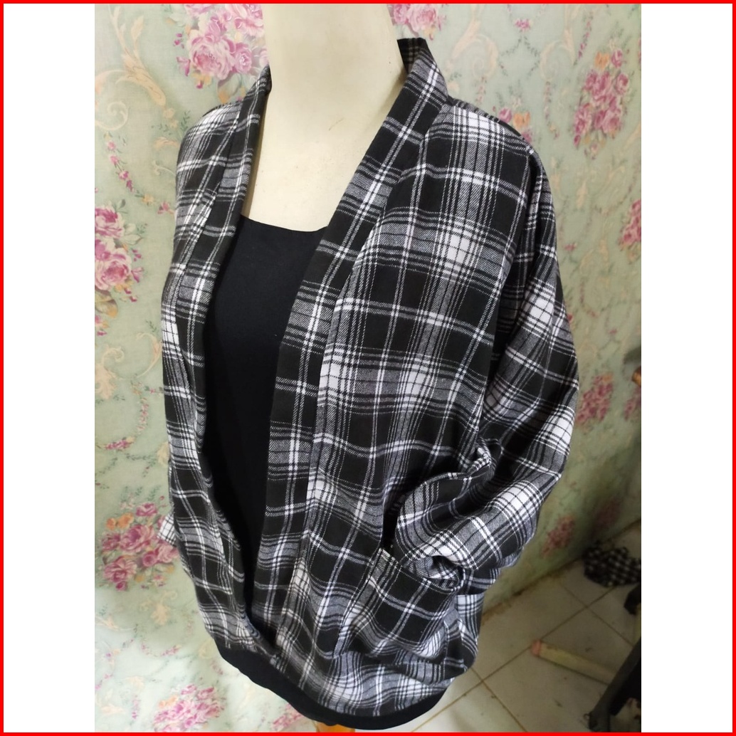 Outer Batwing Flanel Viral Cardigan Batwing Grid