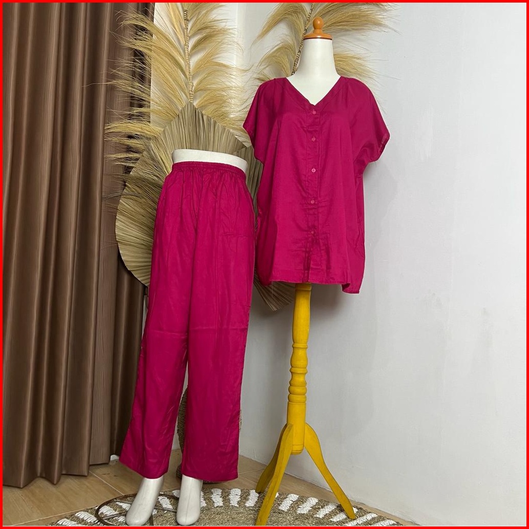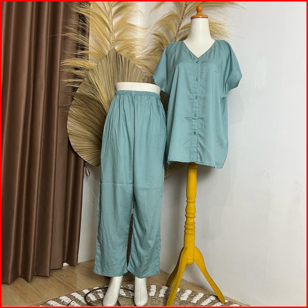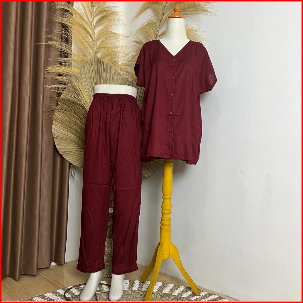 Piyama Oblong Varisha Full Kancing Non Kerah Pajamas V-neck Busui Piyama Rayon Polos