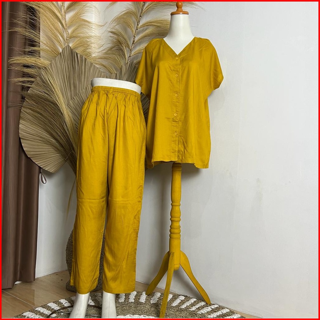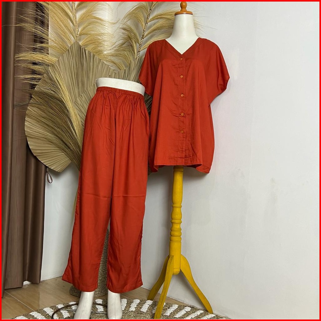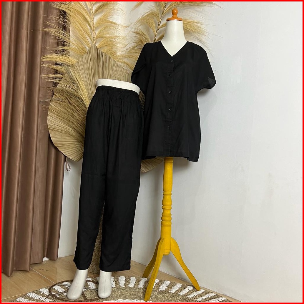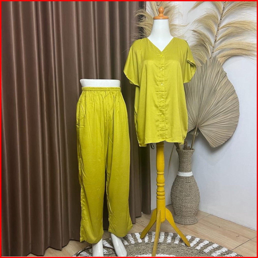 Piyama Oblong Varisha Full Kancing Non Kerah Pajamas V-neck Busui Piyama Rayon Polos