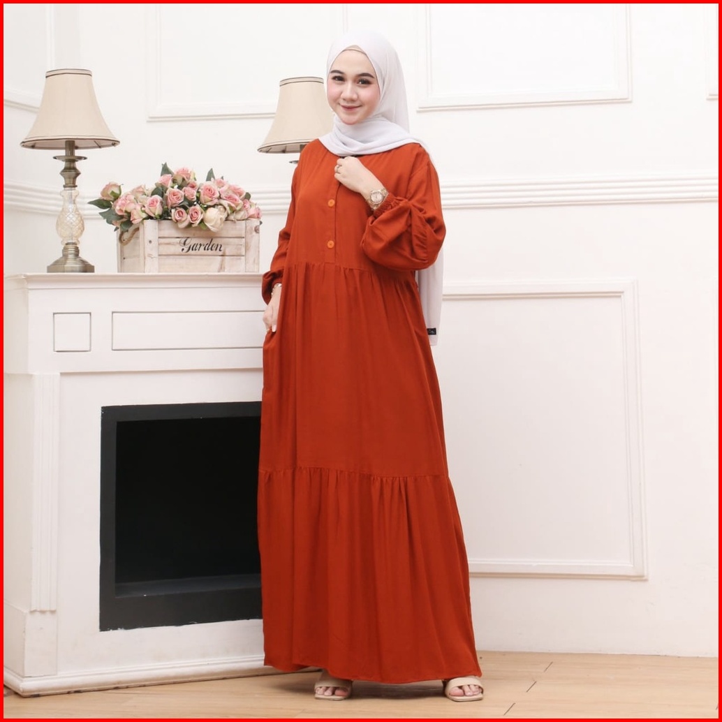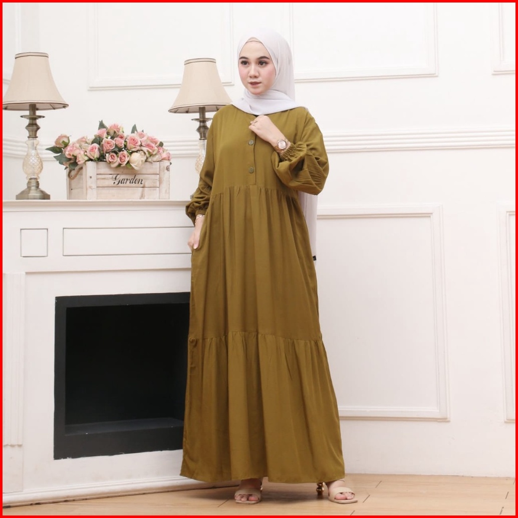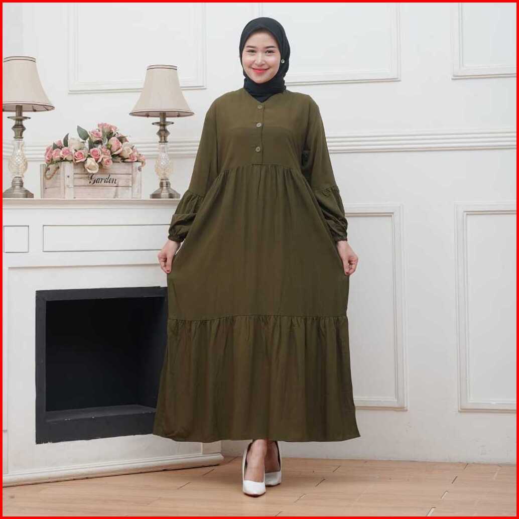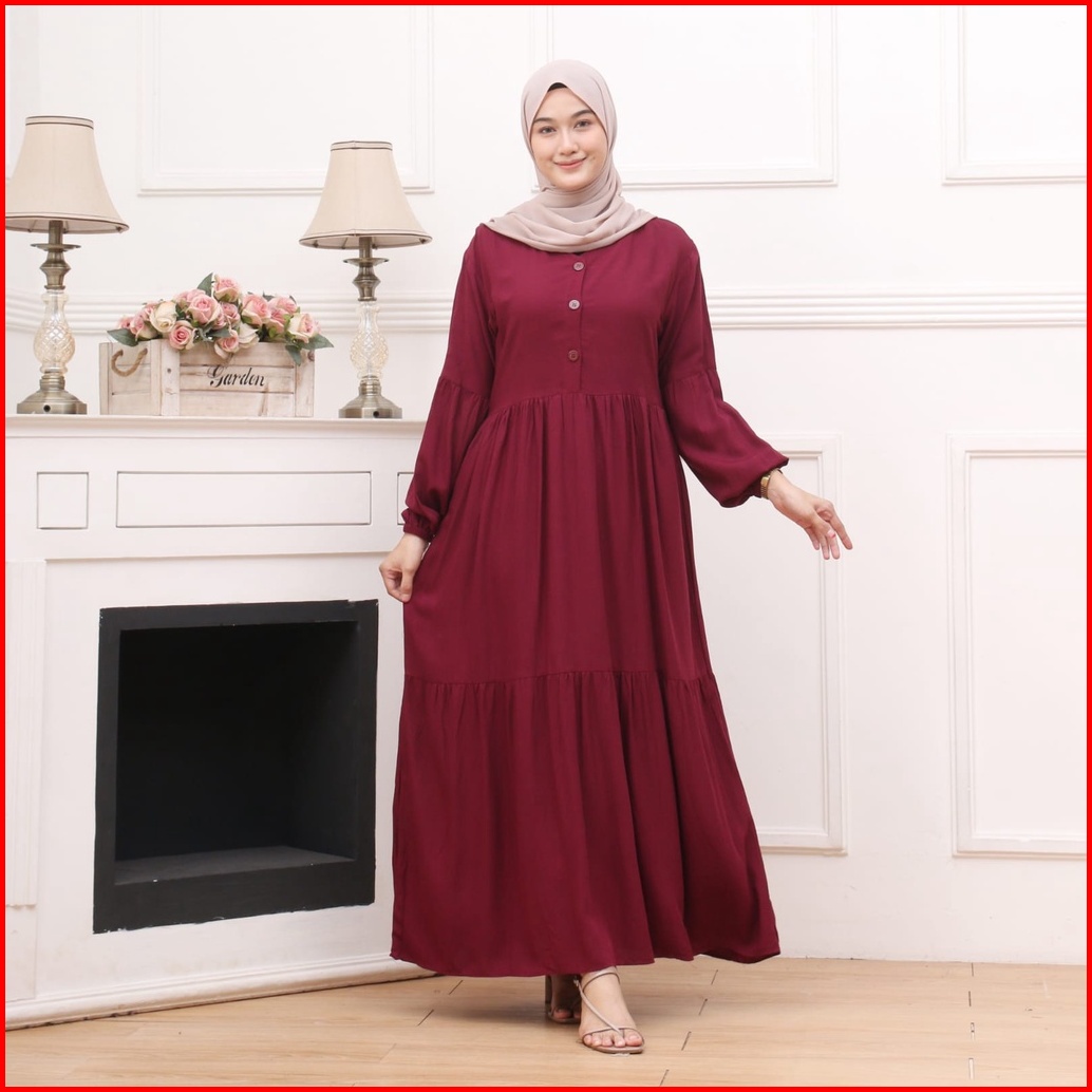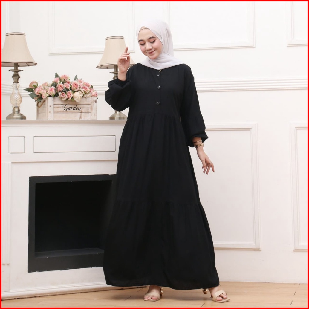Gamis Rayon Polos Susun Canda Lengan Balon Busui Kancing Depan