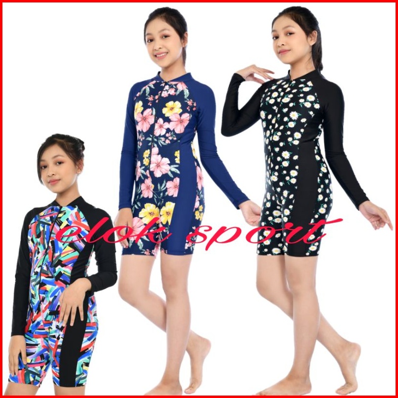 Baju Renang Wanita Baju Renang Abg Dan Remaja Usia 10-15 Tahun Baju Renang Tangan Panjang Baju Renang Motif Baju Renang
