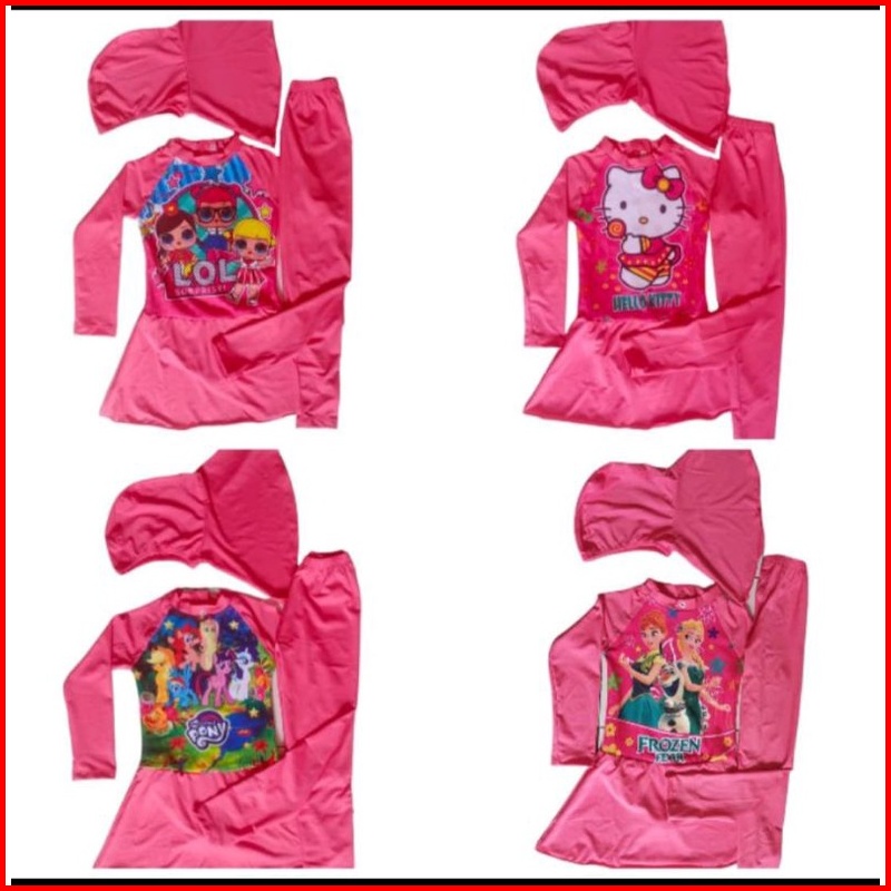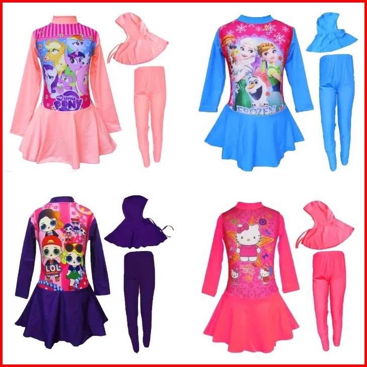 Baju Renang Muslim Anak Perempuan Usia 1-12 Tahun Diving Kerudung Karakter Anak Cewek Ini