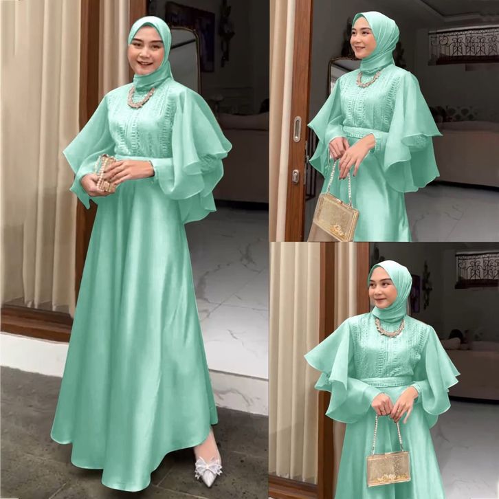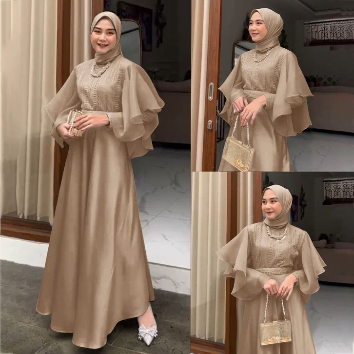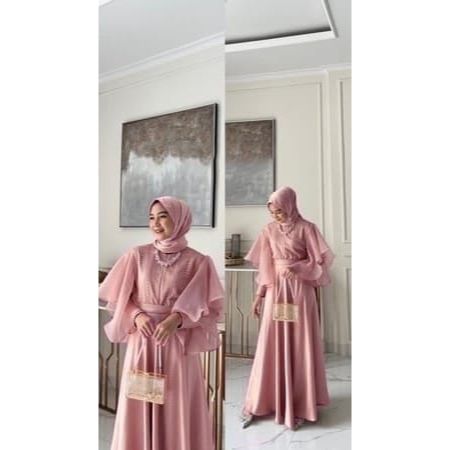 Gamis Wanita Maxi Dress Fashion Perempuan Seragam Bridesmaind Kondangan Pesta Velvet Satin Mix Brokat Cantik