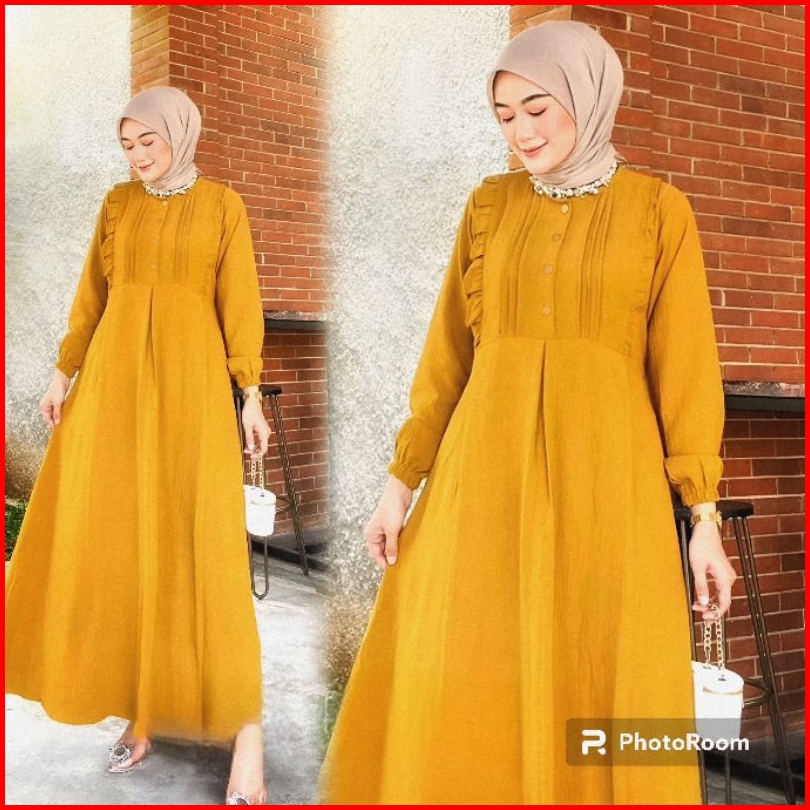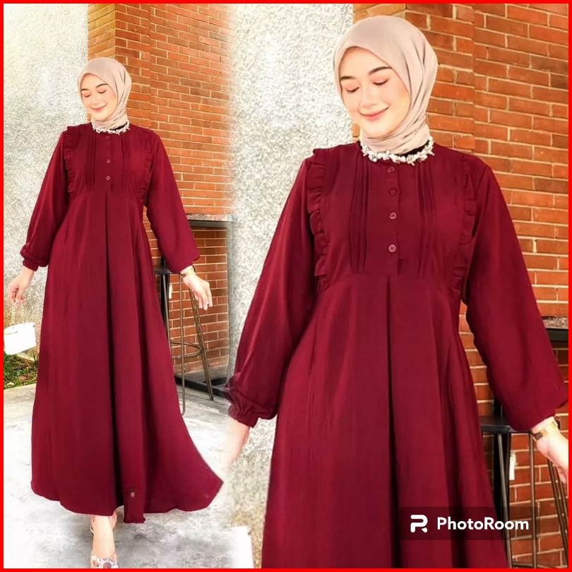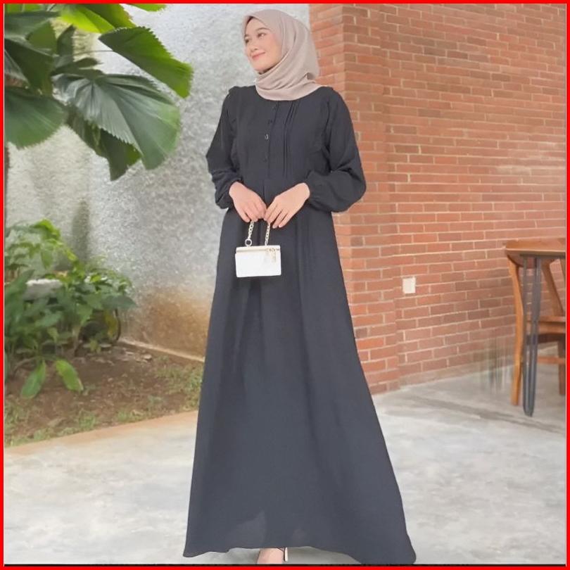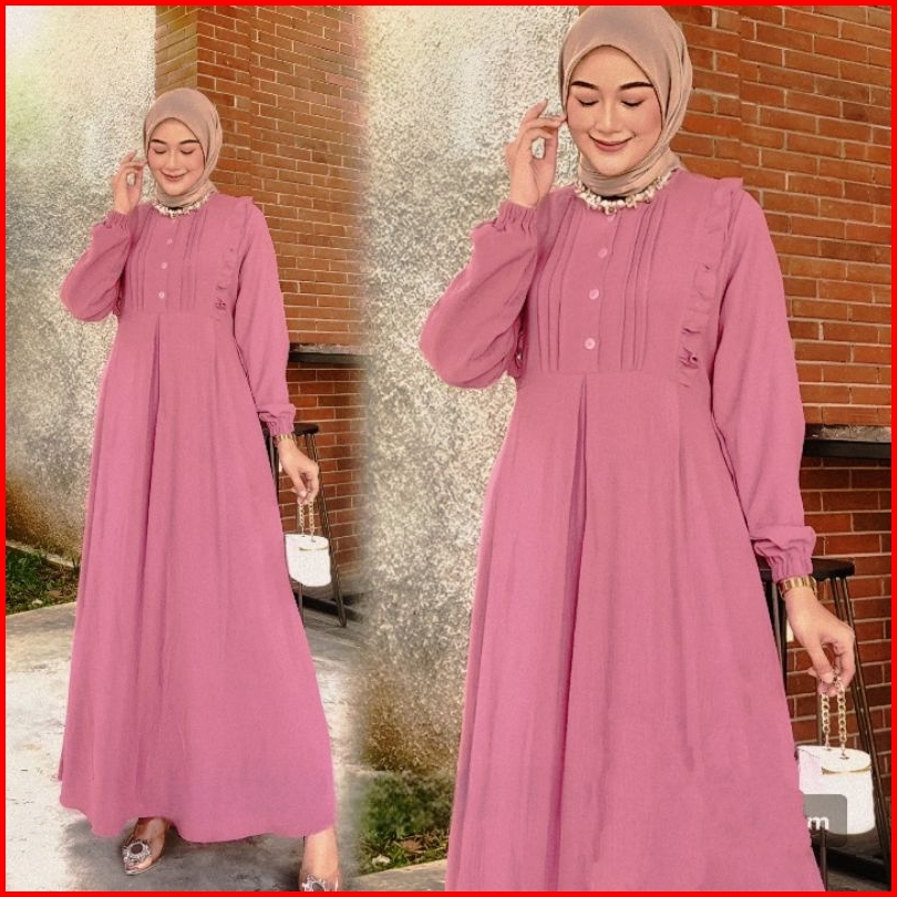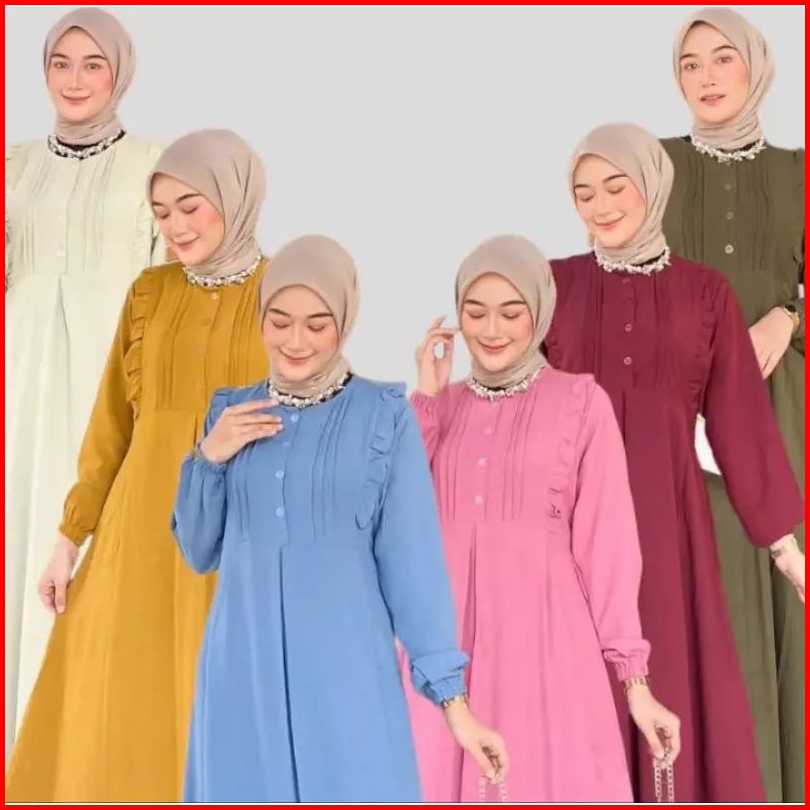 Adara Dress Crinkle Airflow Premium Gamis Polos Kancing Busui Rinelfa Galeri