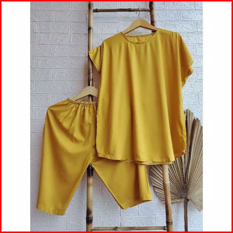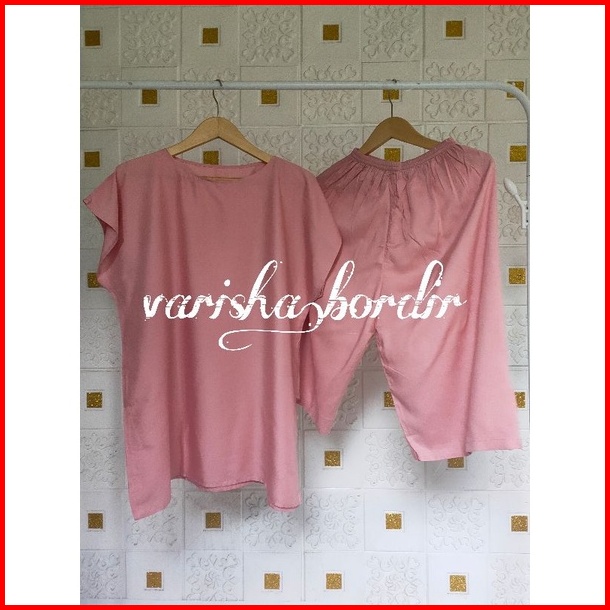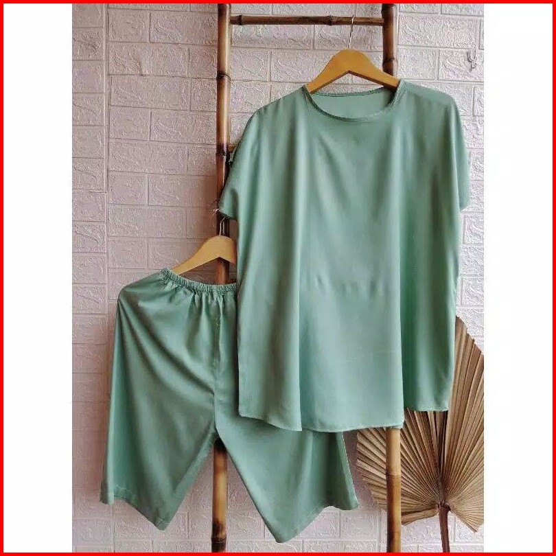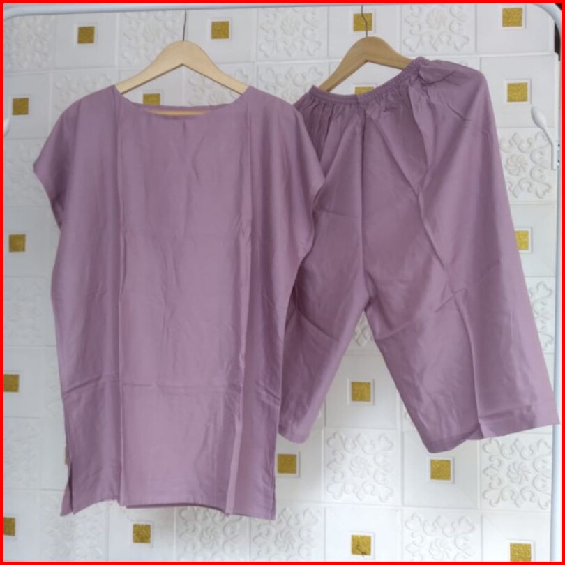 Pajamas Celana Pendek Oneset Polos Rayon Premium Pajamas Polos Set Celana Tangan Pendek Pajamas