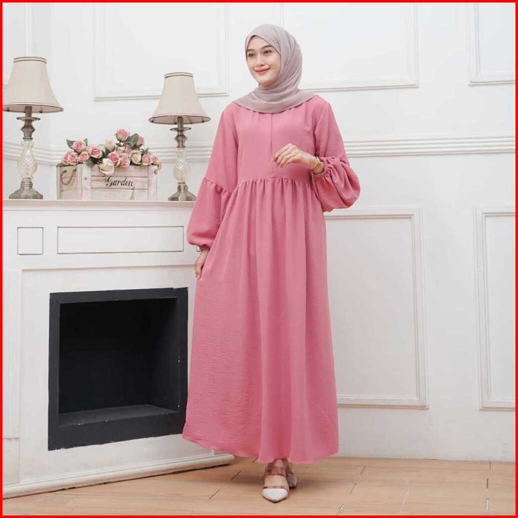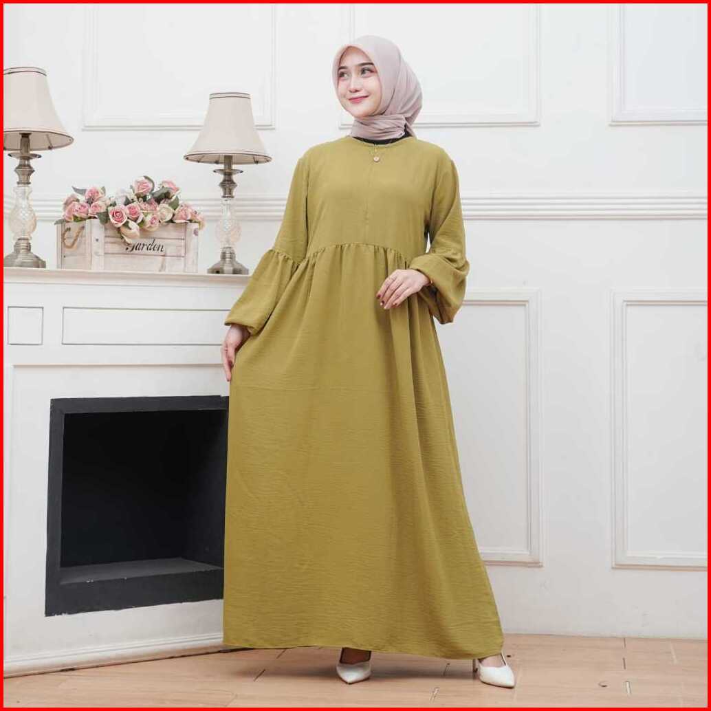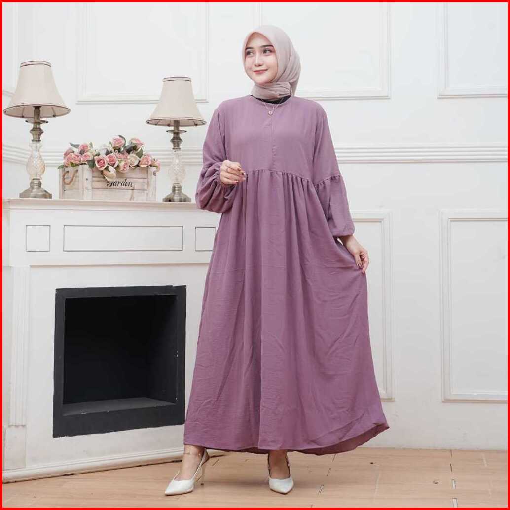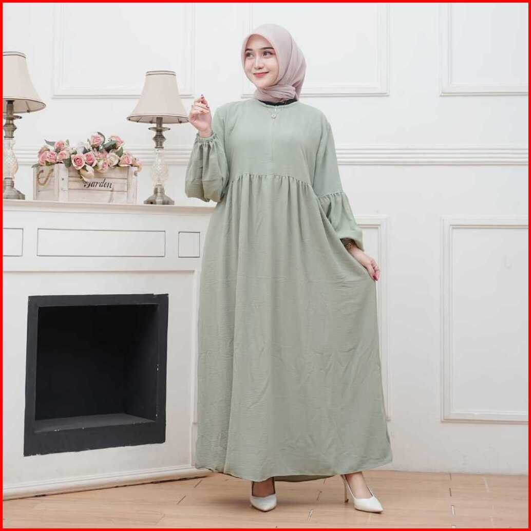 Achsa Long Dress Gamis Crinkle Airflow Busui Frendly