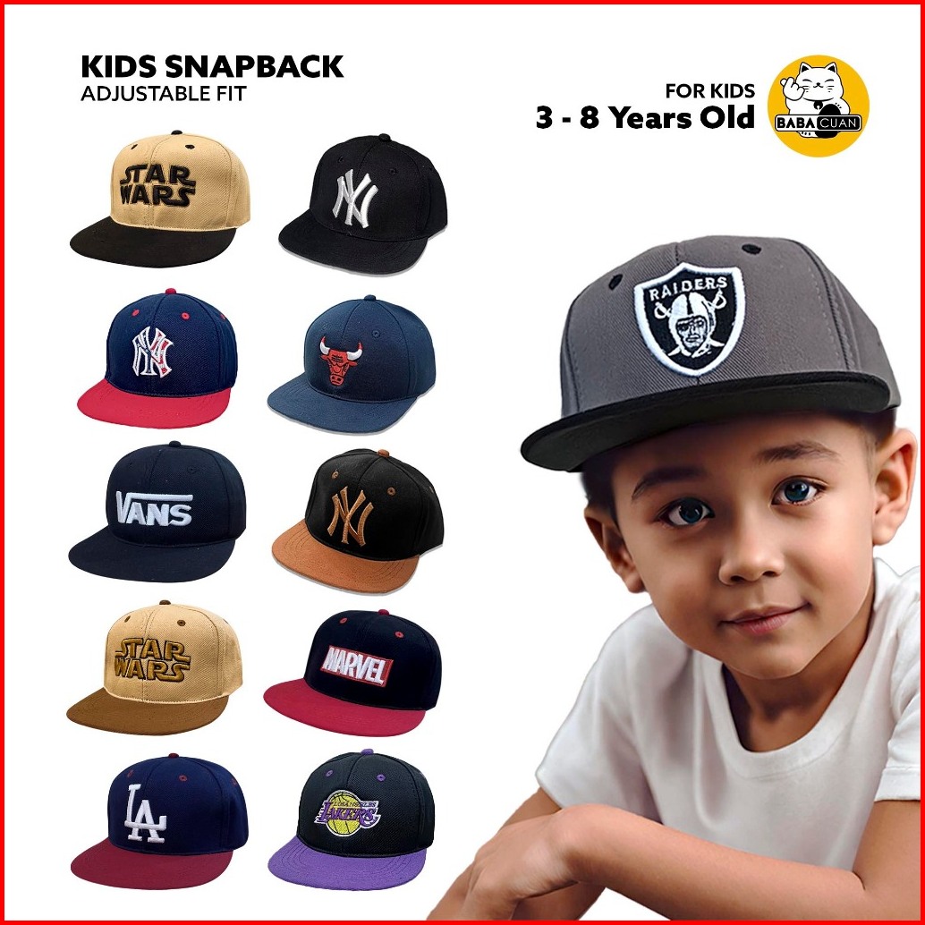 Topi Anak Snapback Bordir Hiphop Unisex Usia 3-8 Tahun - Sbbr