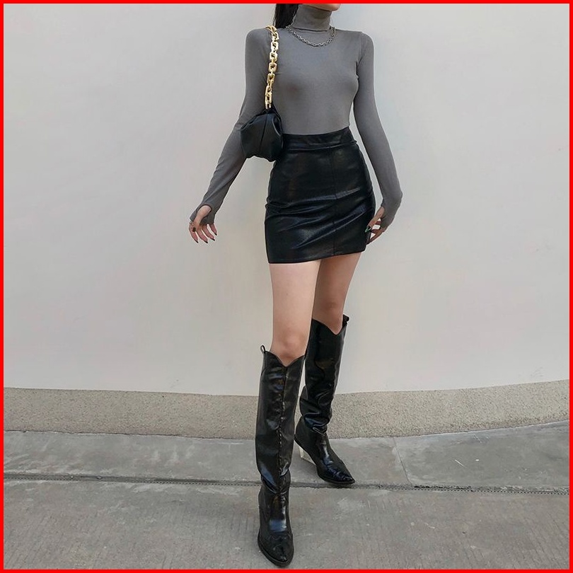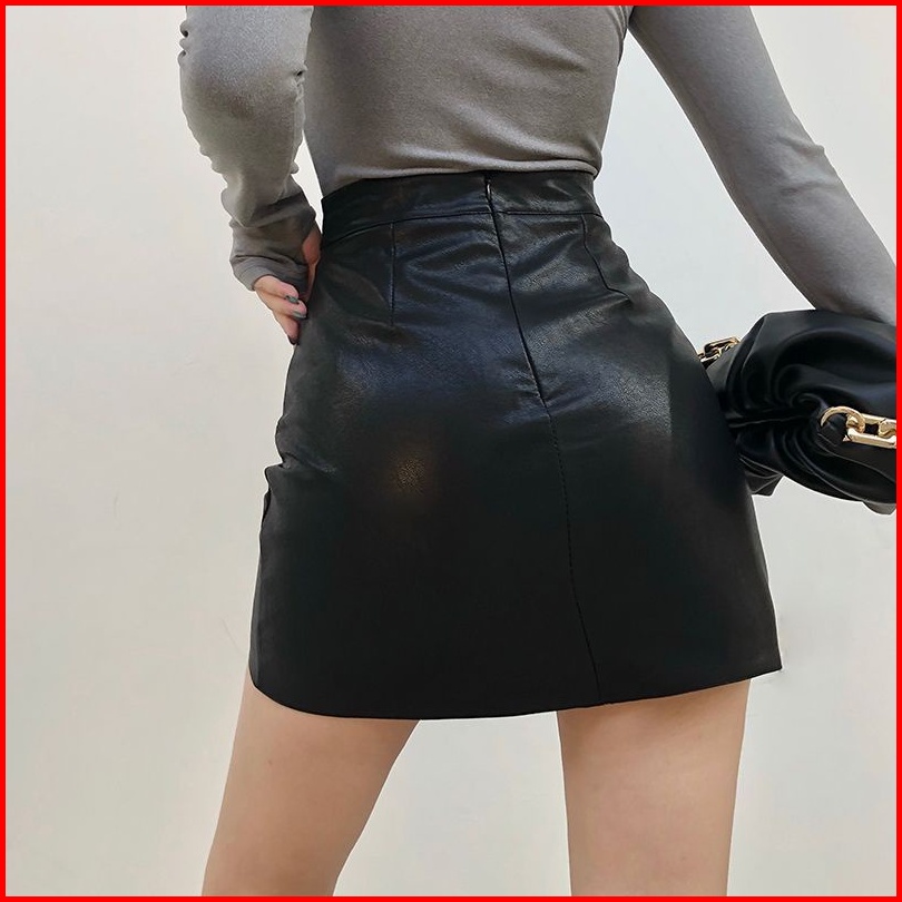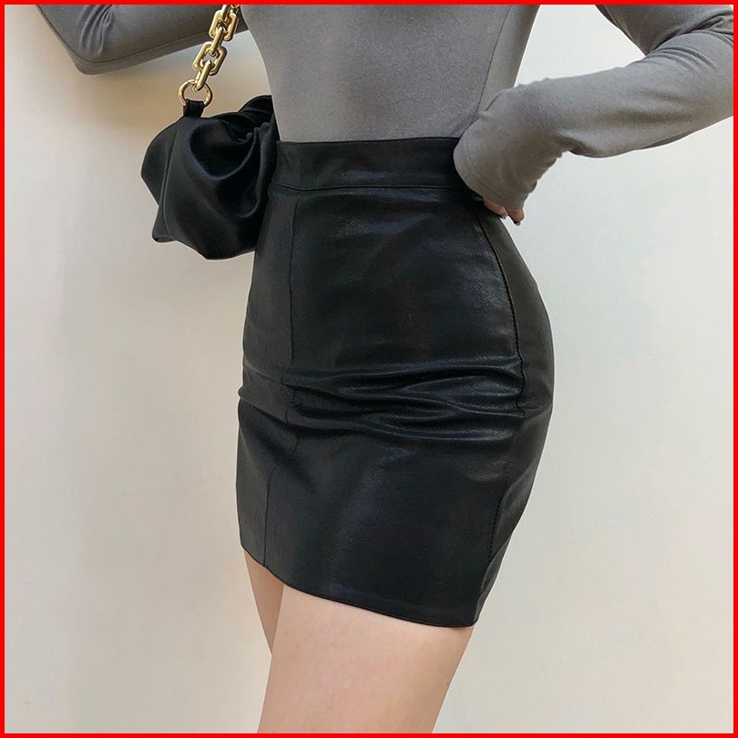 Rok Wanita Mini Fitted Skirt Leather Rok Fashion Korean Style