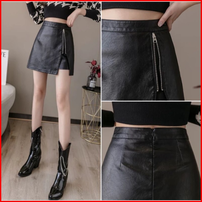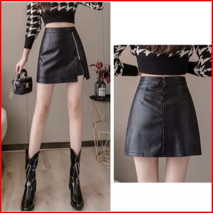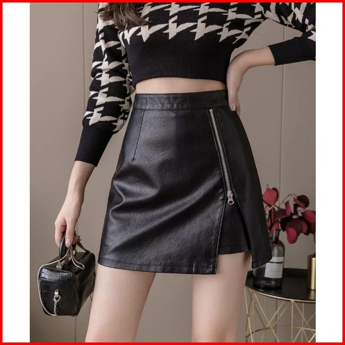 Rok Wanita Kasual Warna Solid Hitam Elegan High Waist