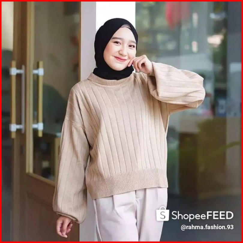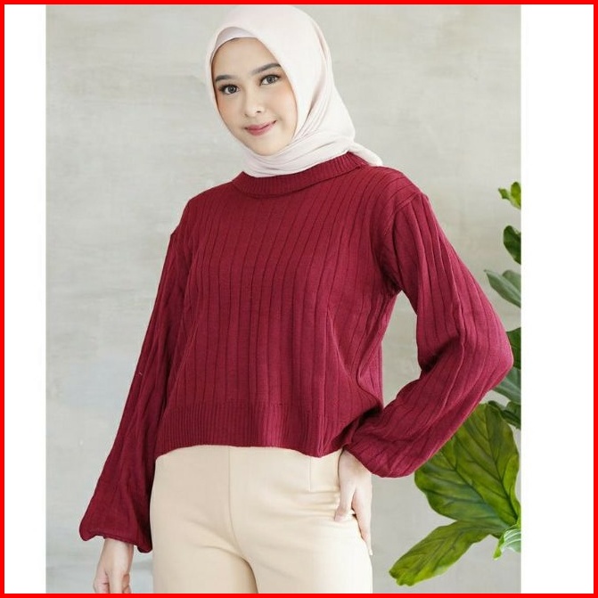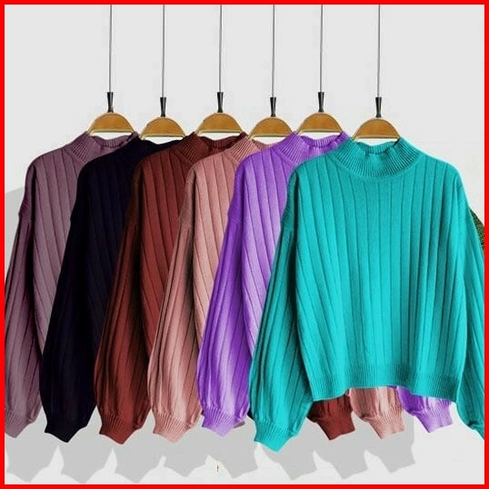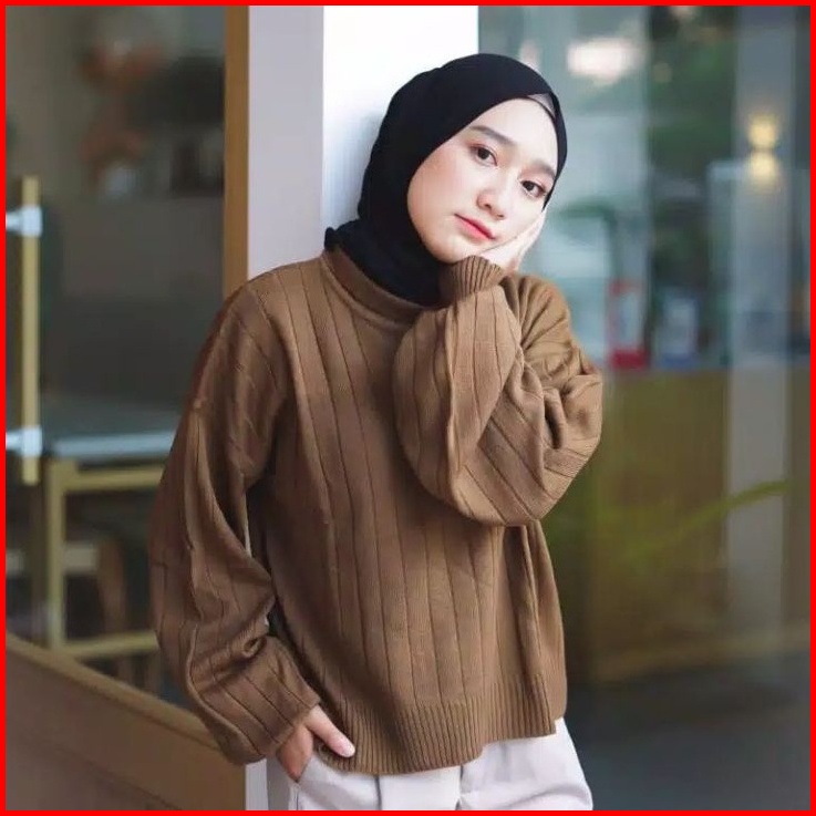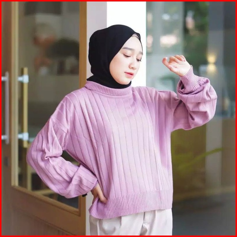 Discon Sweater Jovanka Rajut Turtleneck Knitwear Arsyilla Puffy Lengan Balon