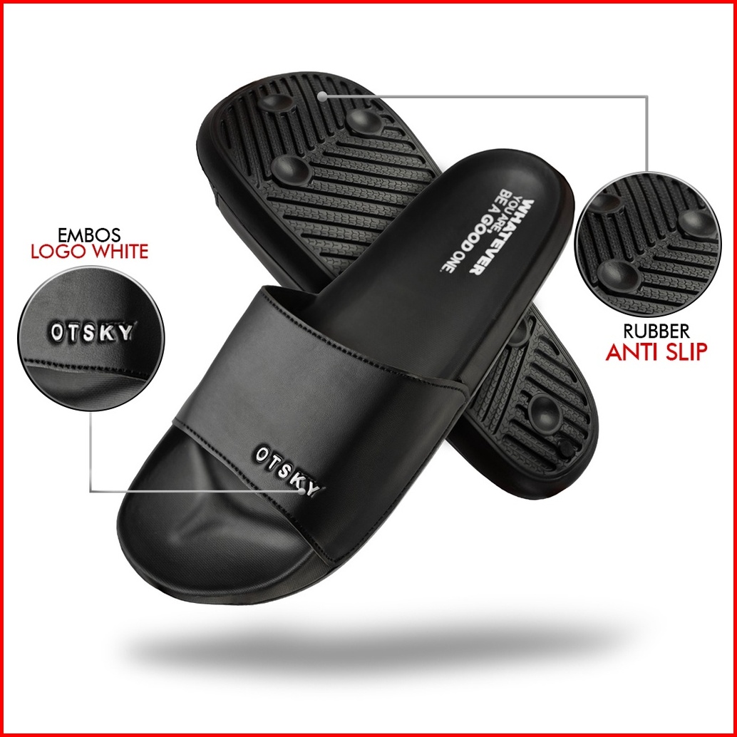 Otsky Sandal Slip On Series Font Logo Simple Whatever Black Pria