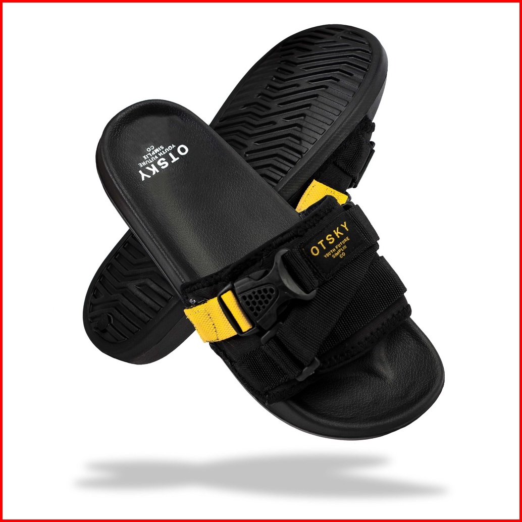 Otsky Sandal Slide Slip On Strap Series Tali Kuning Black