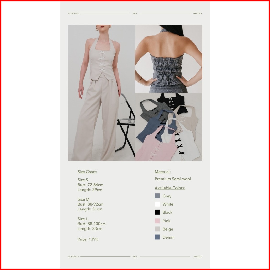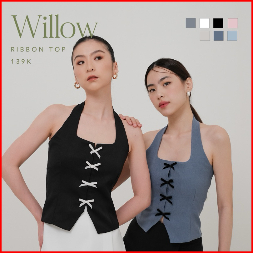Willow Ribbon Top -- Ocha Wear Halter Bow Tanktop Pakaian Atasan Wanita Trendy Casual Premium Vest