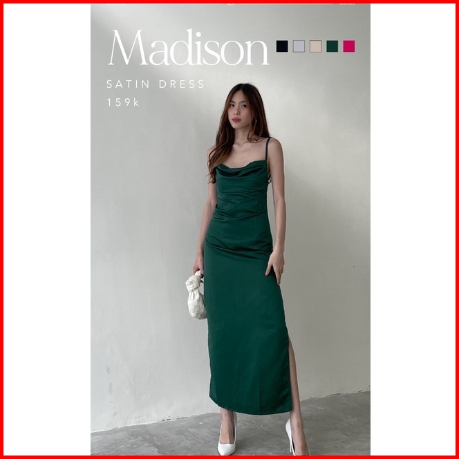 Madison Satin Dress -- Ocha Wear Dress Pesta Satin Backless Slit Party Dress Dress Kondangan Midi Dress Murah Berkualita