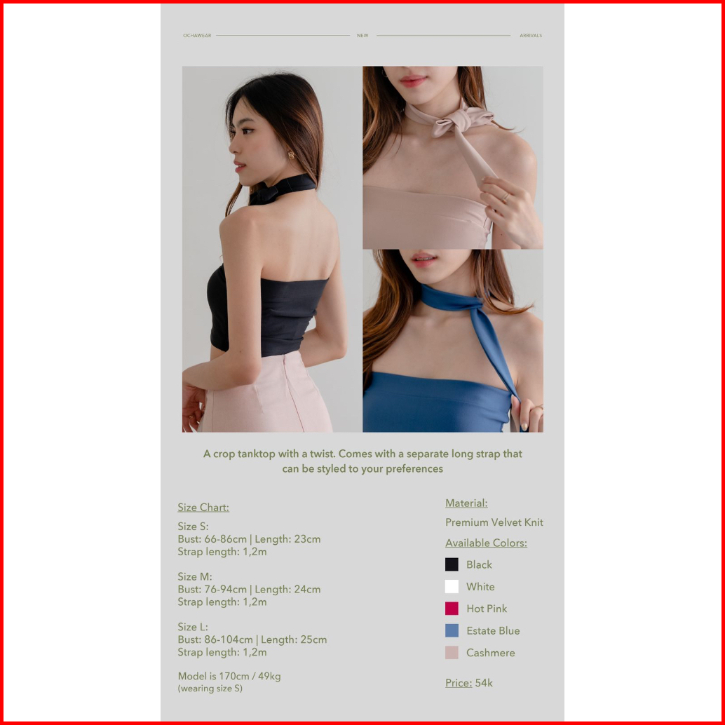 Eilene Crop Camisole Ocha Wear Knit Tanktop Kemben Wanita Kamisol Crop Top Premium Murah Berkualitas