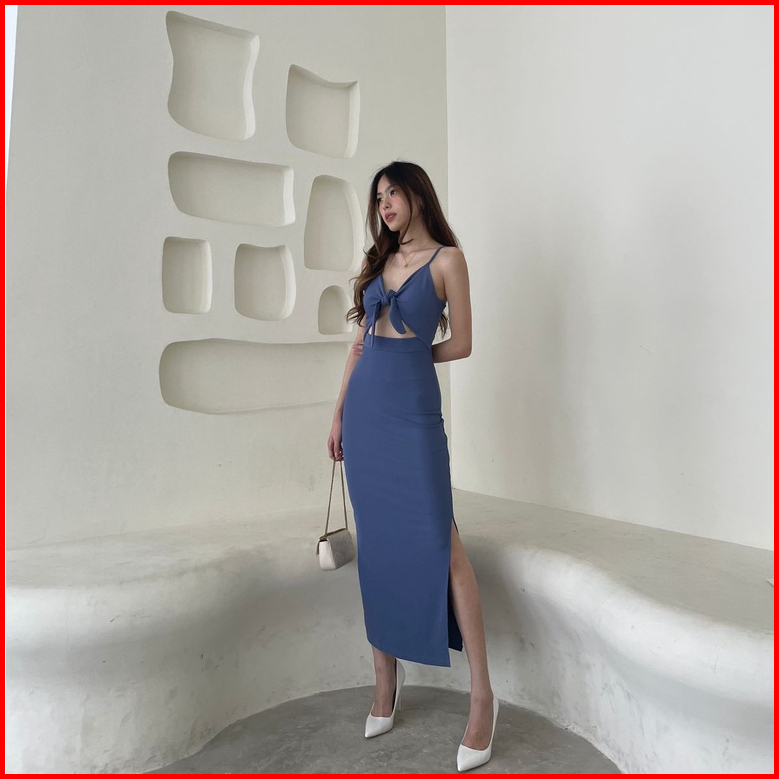 Arlene Dress -- Ocha Wear Knit Midi Summer Dress Bust Tied Bodycon Pakaian Wanita Slit Dress