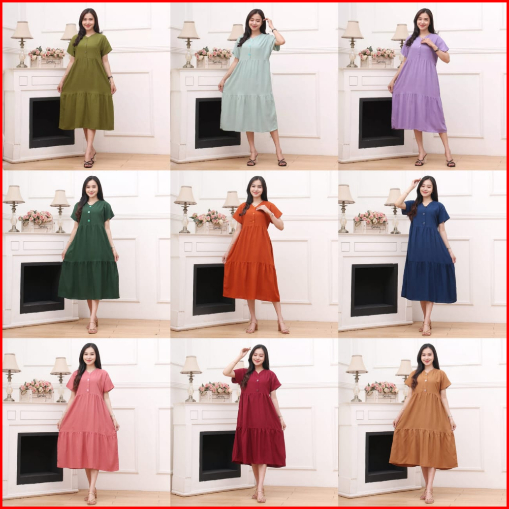 Achsa Dress Home Dress Rayon Polos Casual Dress Korean Style