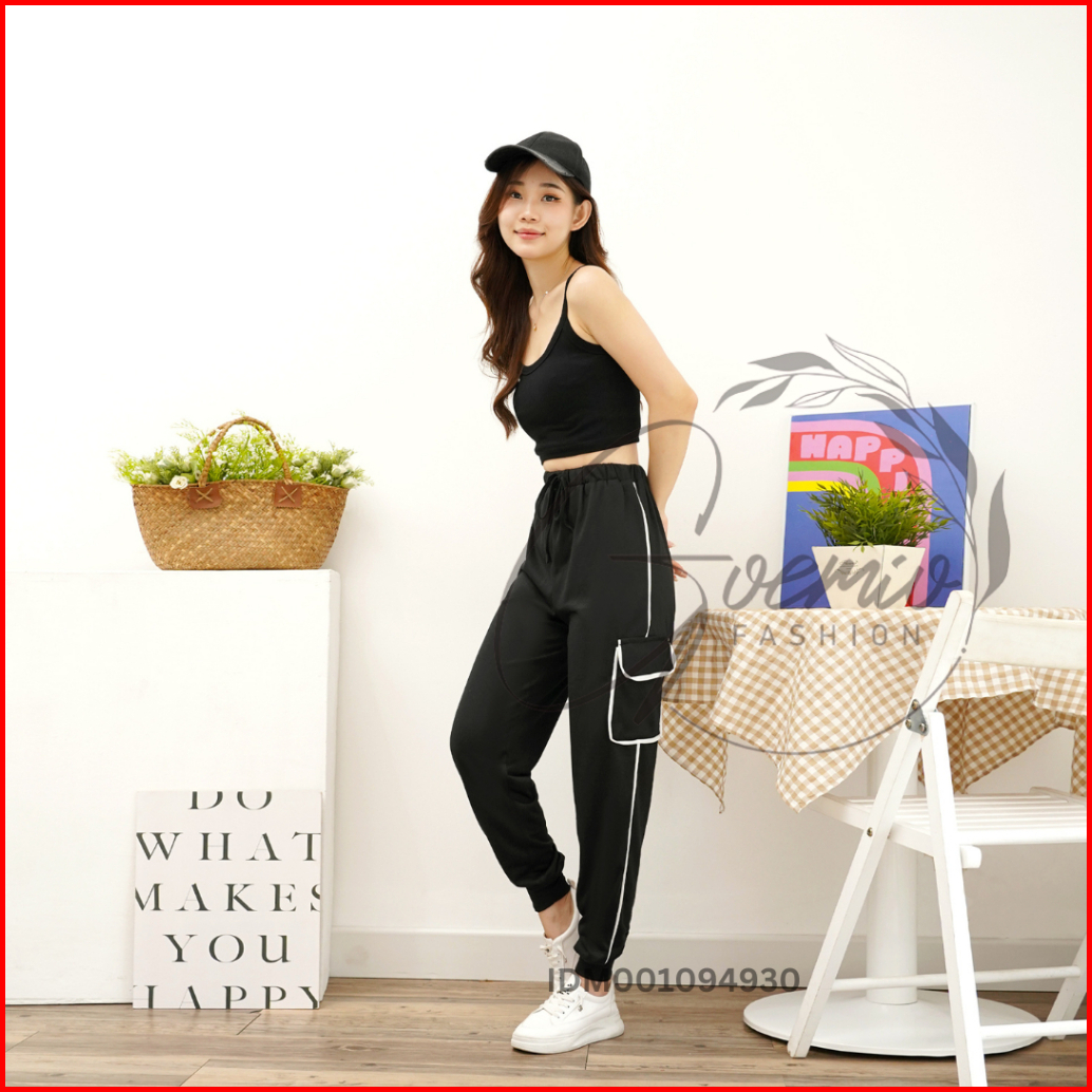 Ilook Cargo Soeya Celana Jogger Panjang Wanita Korean Style Polos Basic