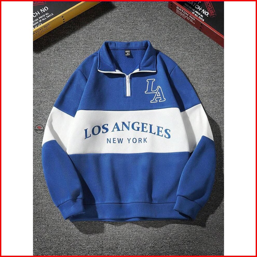 Sweater Rugby Halfz Zipper Stripe Terbaru Sweater Kerah Crewneck Loseangels Pria Wanita