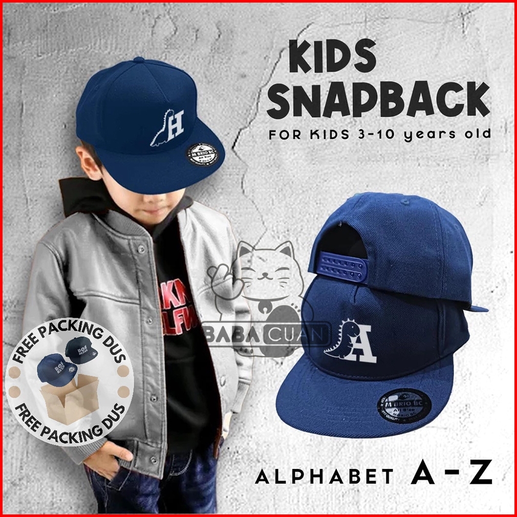 Topi Anak Snapback Alfabet Huruf Dino A-z Navy - Sbpls-nv