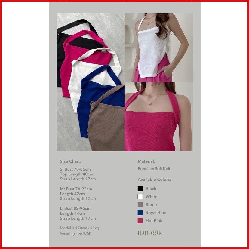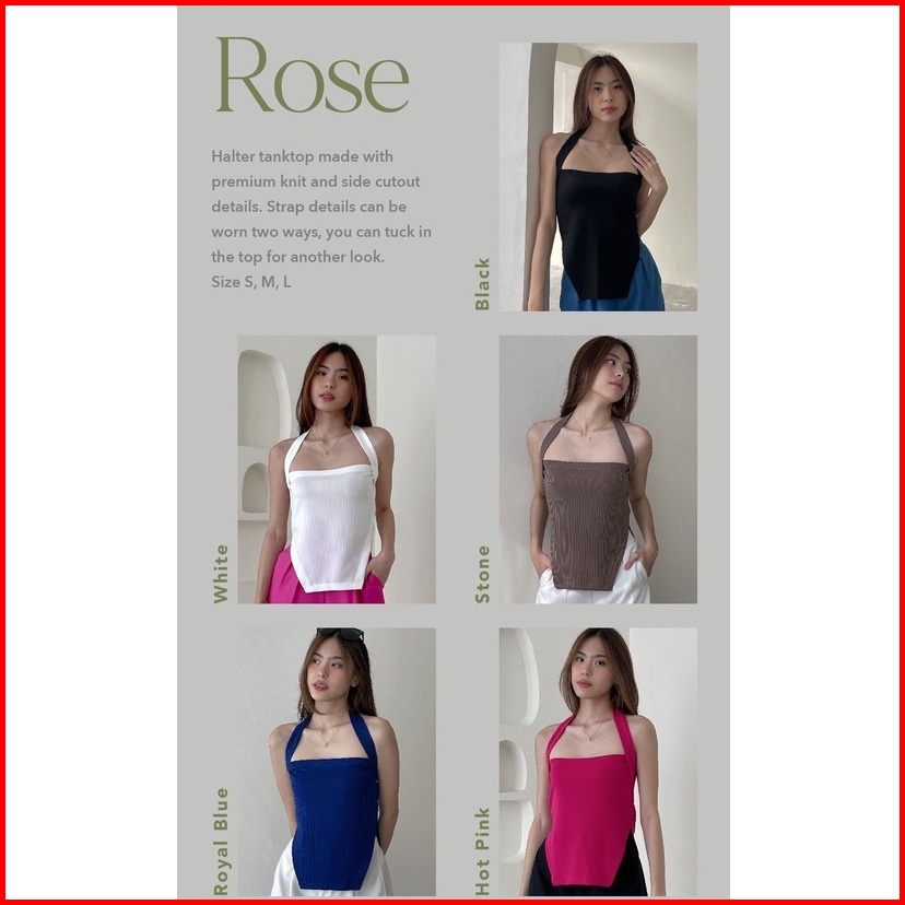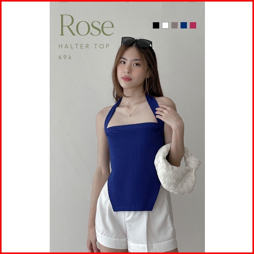 Rose Halter Top Ocha Wear Premium Knit Wanita Tanktop Camisole Side Cut Out Atasan Murah Berkualitas