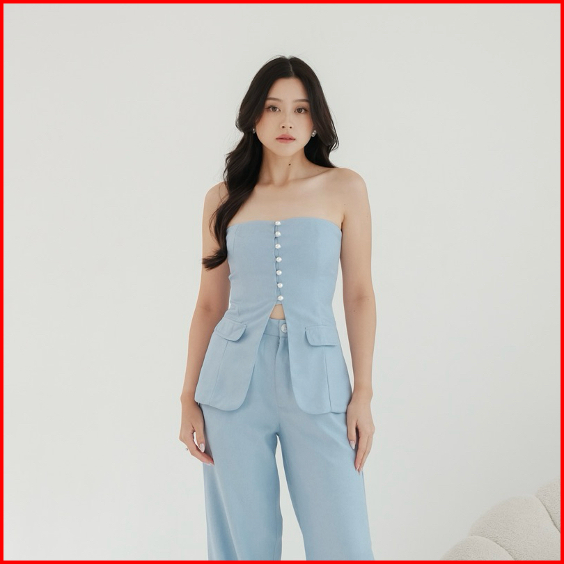 Pearl Tube Top -- Ocha Wear X Valerie Pola Tanktop Trendy Casual Comfy Pearl Buttons