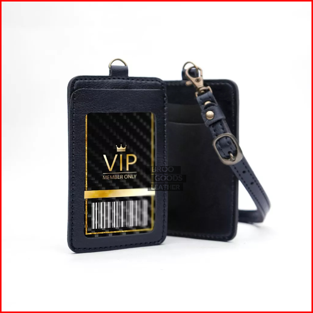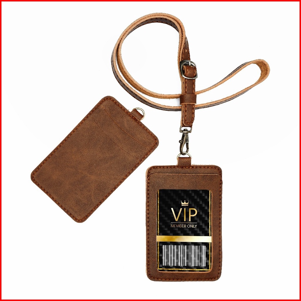 Name Tag Id Card Dipung Holder Kulit Lanyard Termurah Berkualitas Pu Leather Lanyard Nametag Id Card Holder