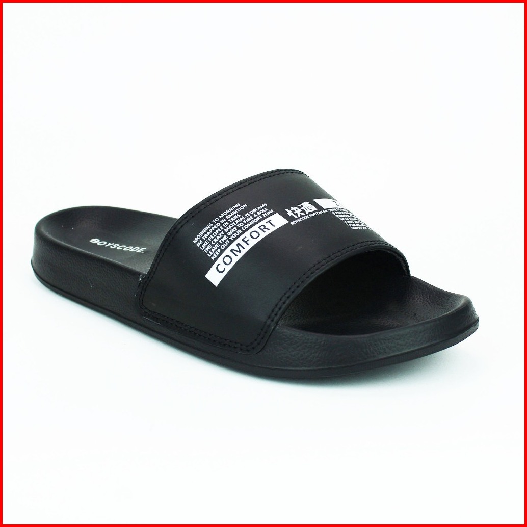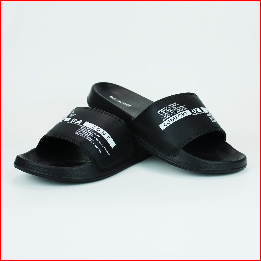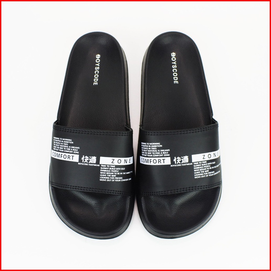 Sendal Selop Karet Distro Pria Wanita Boyscode Comfort Zone Hitam Sandal Kekinian