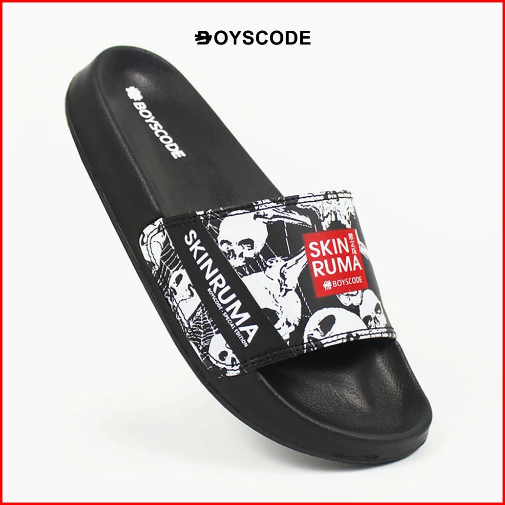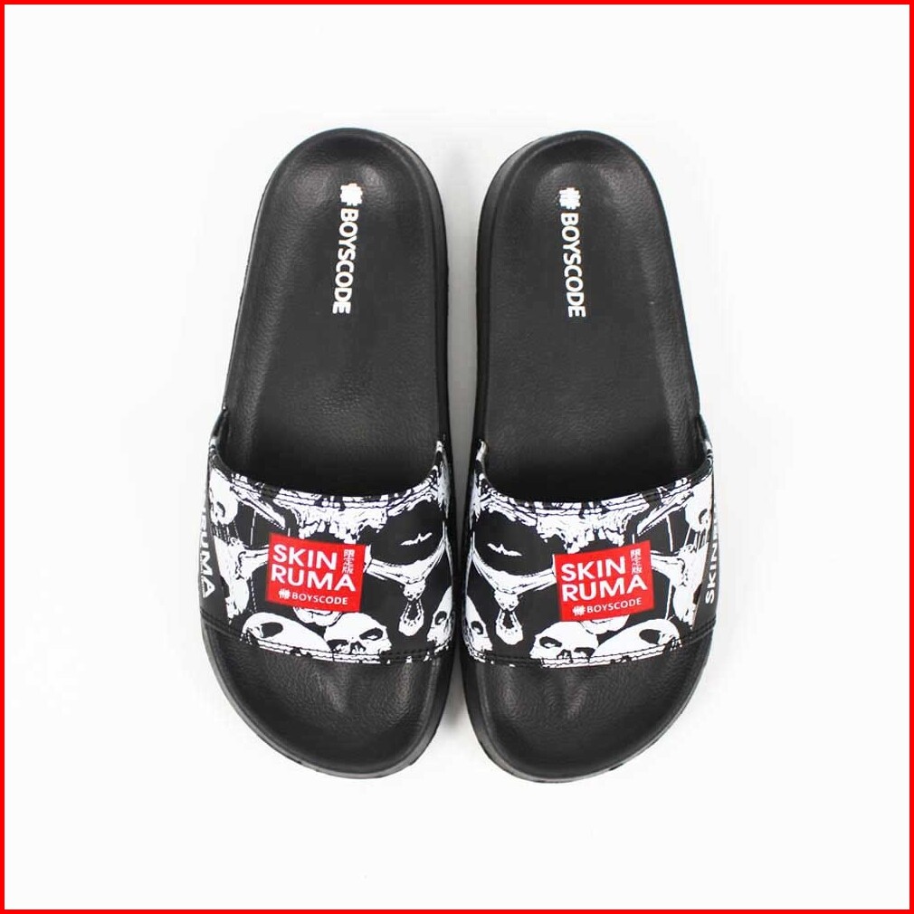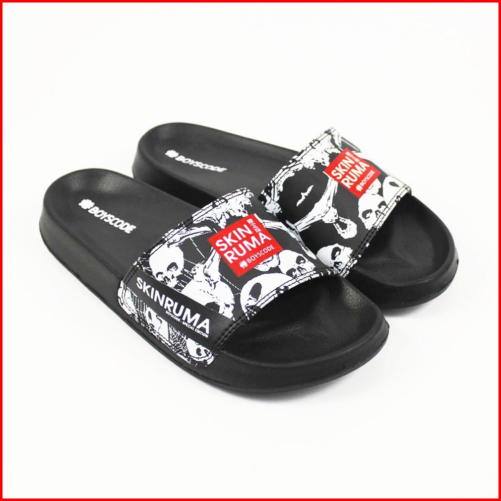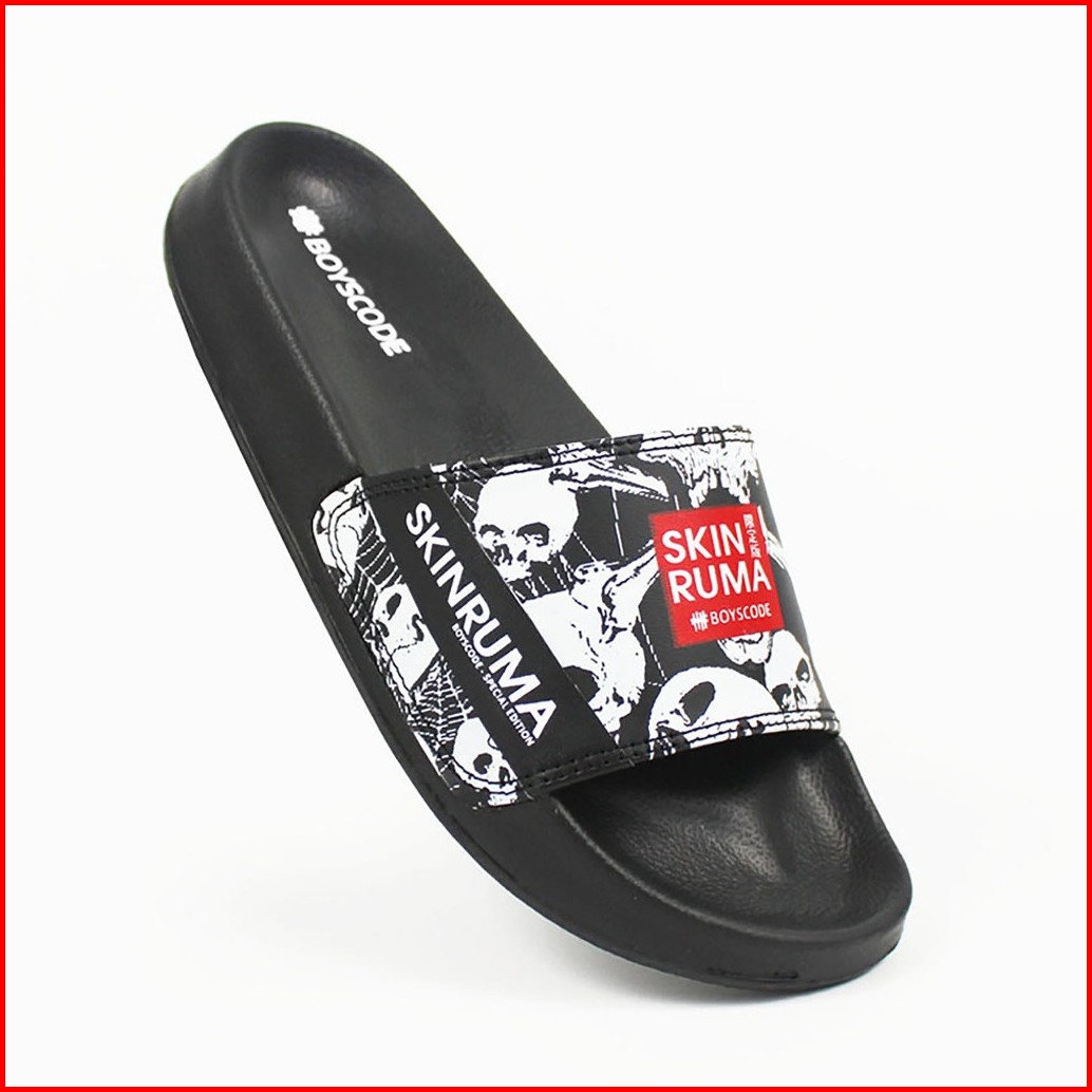 Sendal Selop Pria Wanita Distro Boyscode X Skinruma Black Skull Sendal Slip On Pria Sendal Slide Pria Sendal Slop Pria