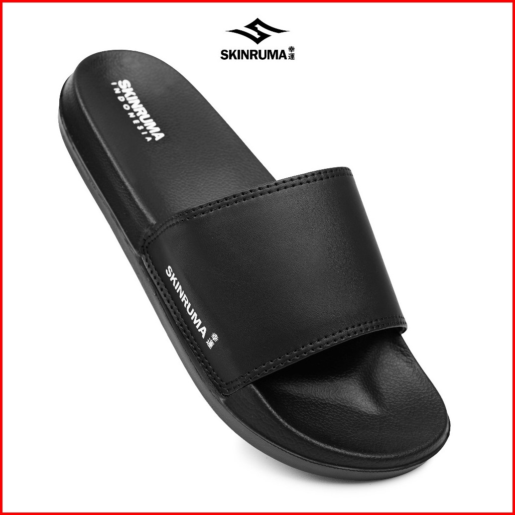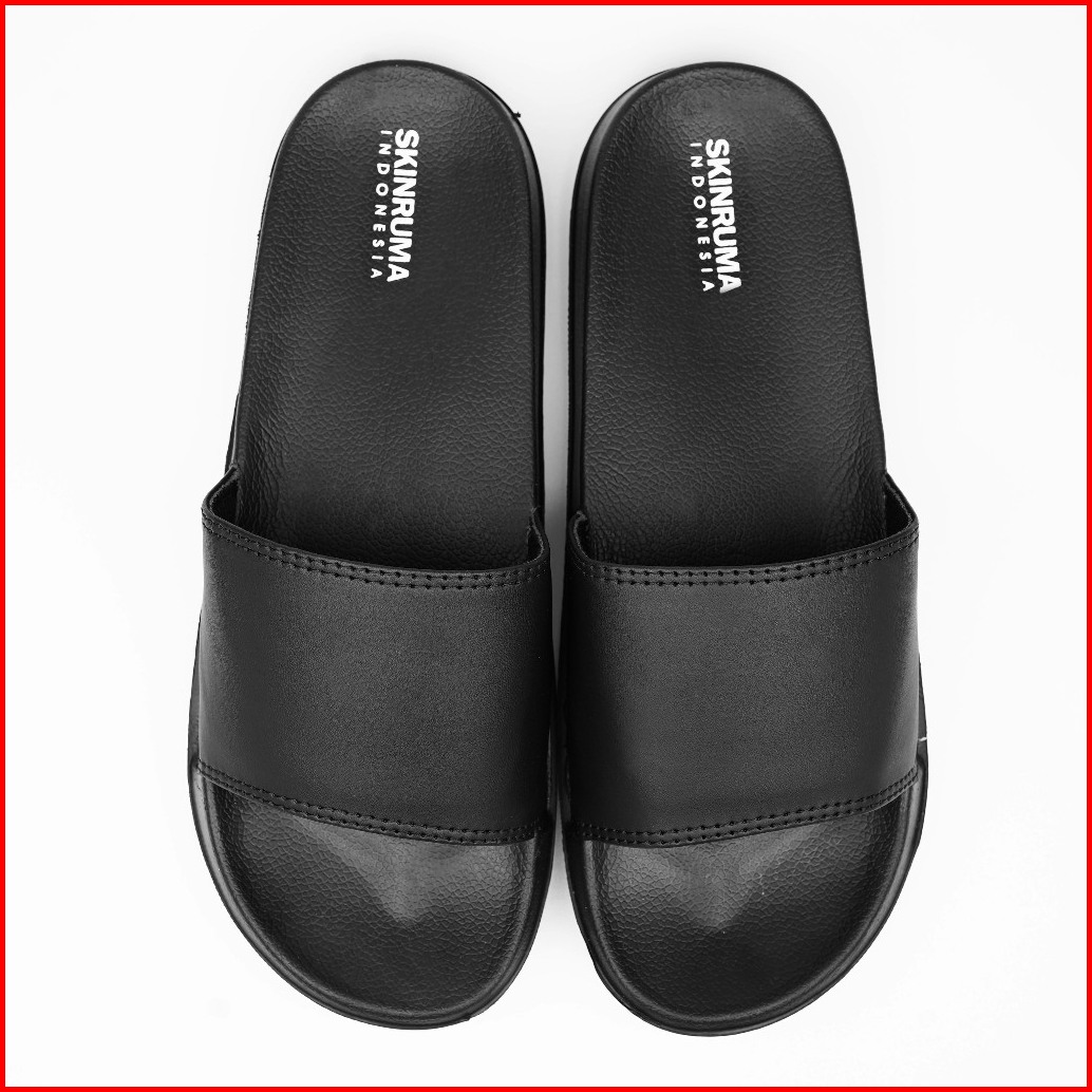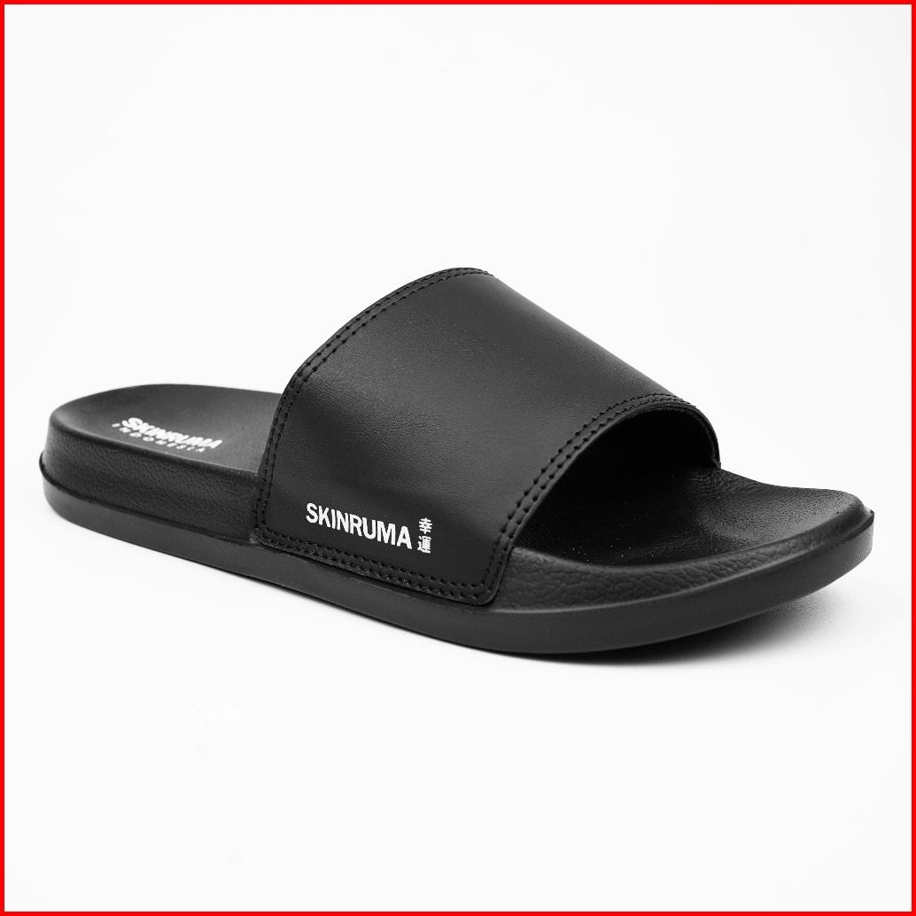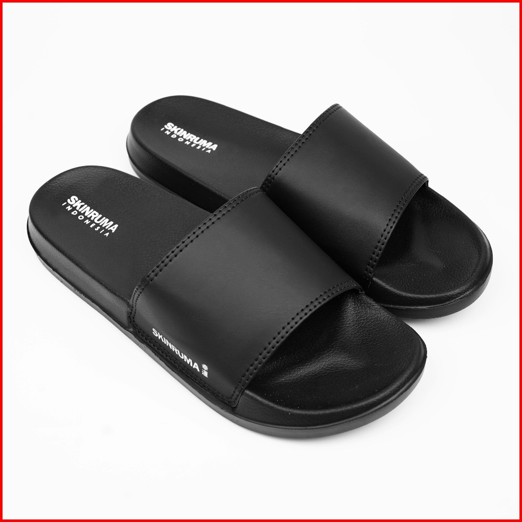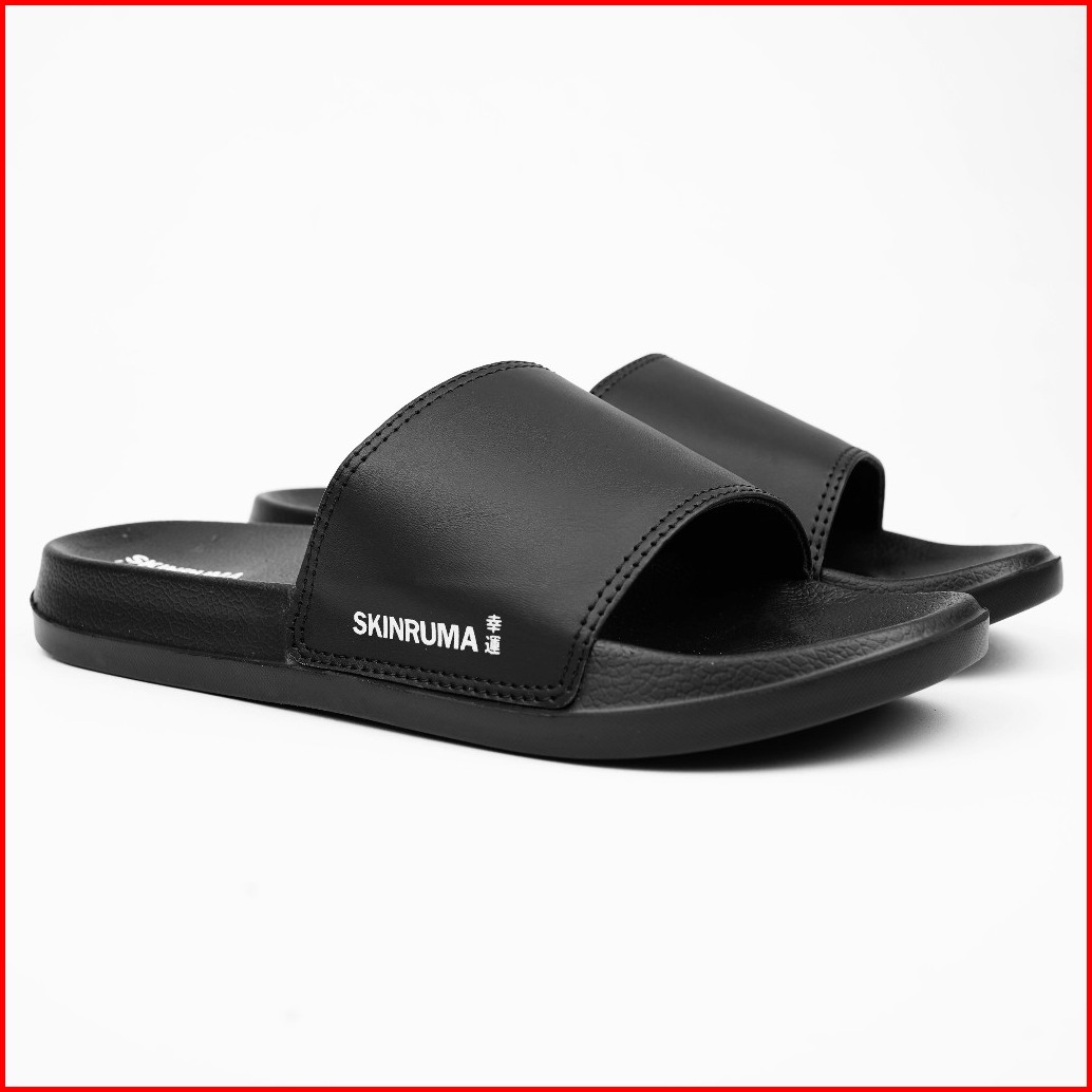 Skinruma Sendal Selop Karet Distro Pria Wanita Side Logo Motive Hitam