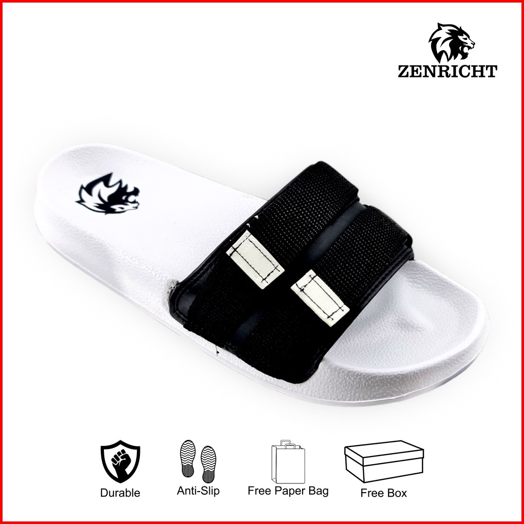 Zenricht - Sandal Pria Strapss White Black Sandal Slide Sandal Gunung Pria Sandal Slip On
