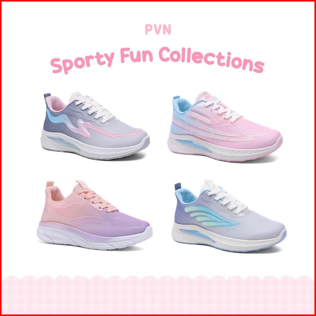 Pvn Sporty Fun Collection Sneakers Sepatu Wanita Pink Biru Abu Putih