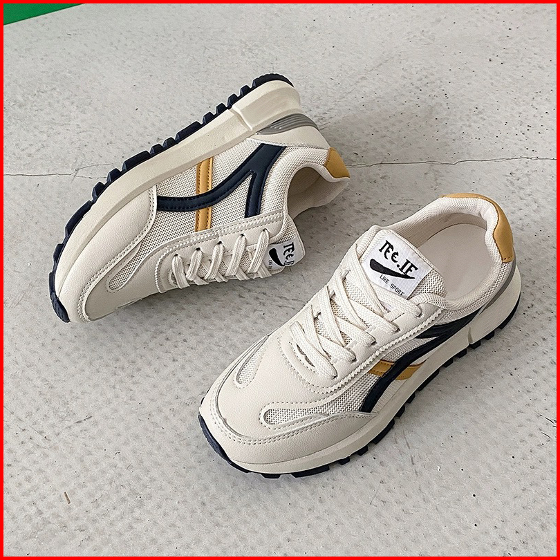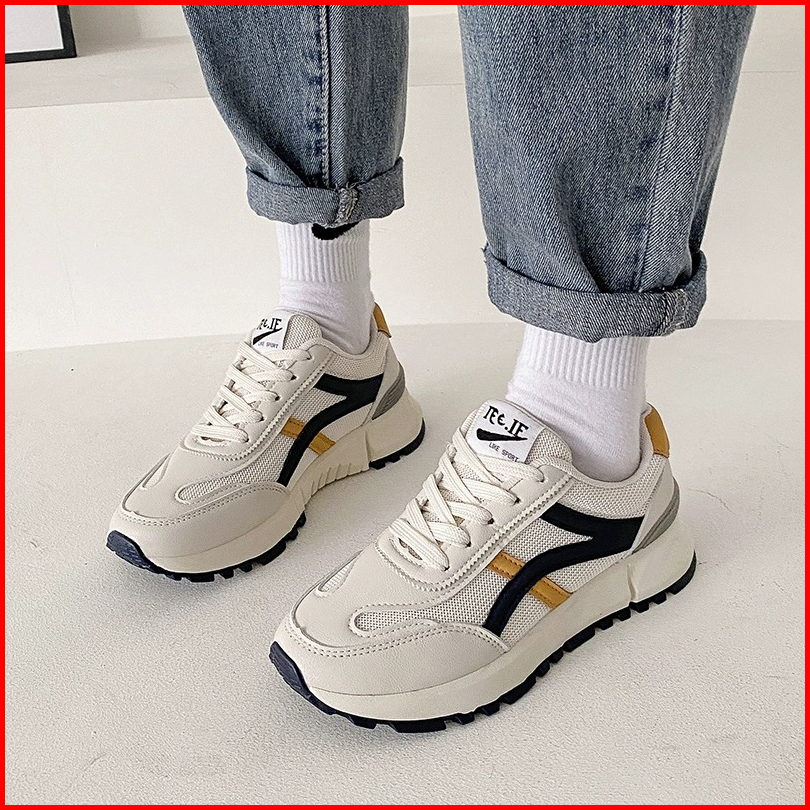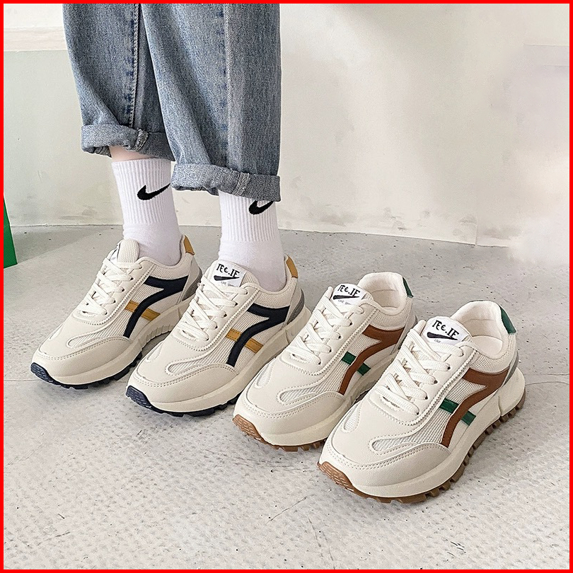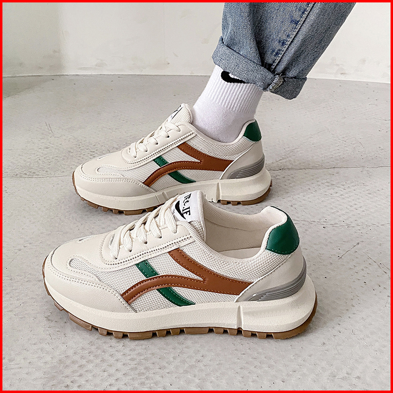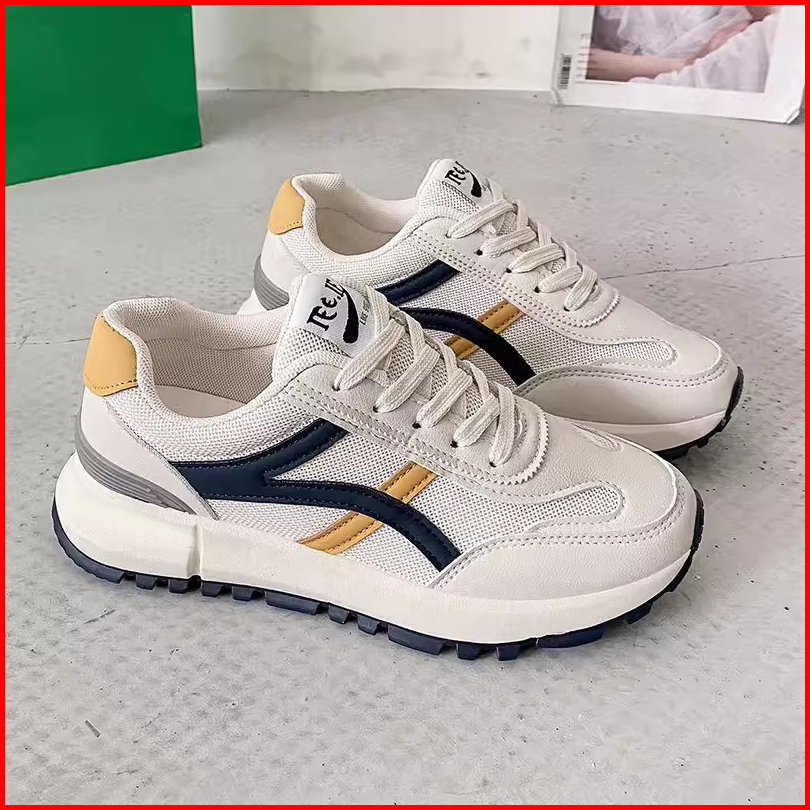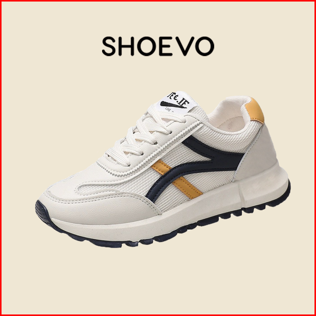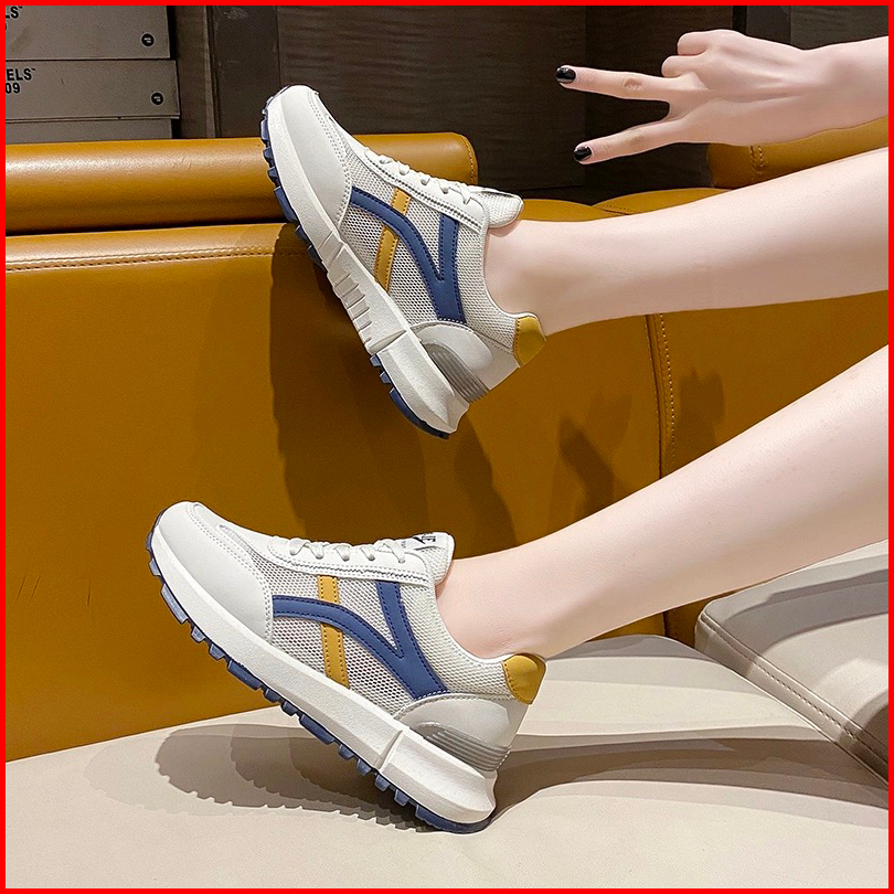 Shoevo Sneakers Wanita Sport Woman Shoes Olahraga Kenyamanan Peningkatan Badan Tinggi Tumit 3cm Biru Cokelat St075