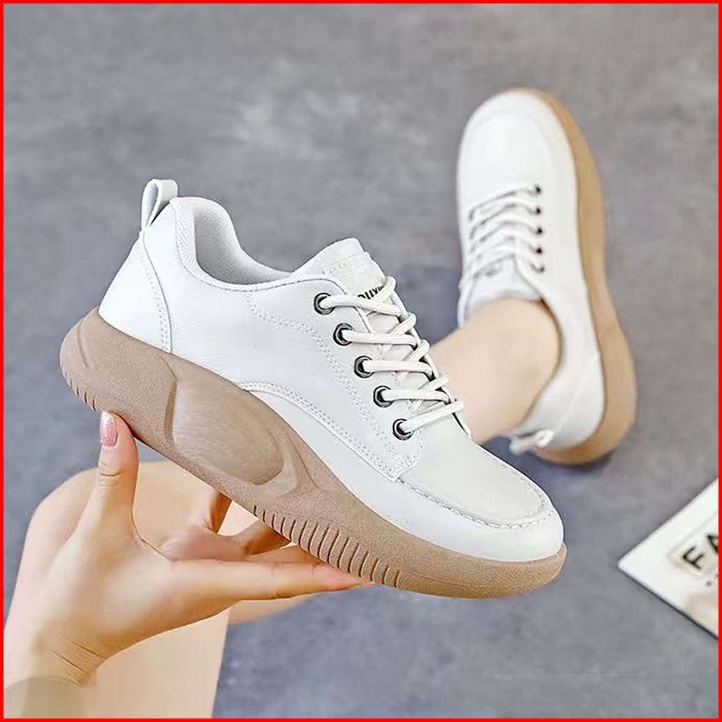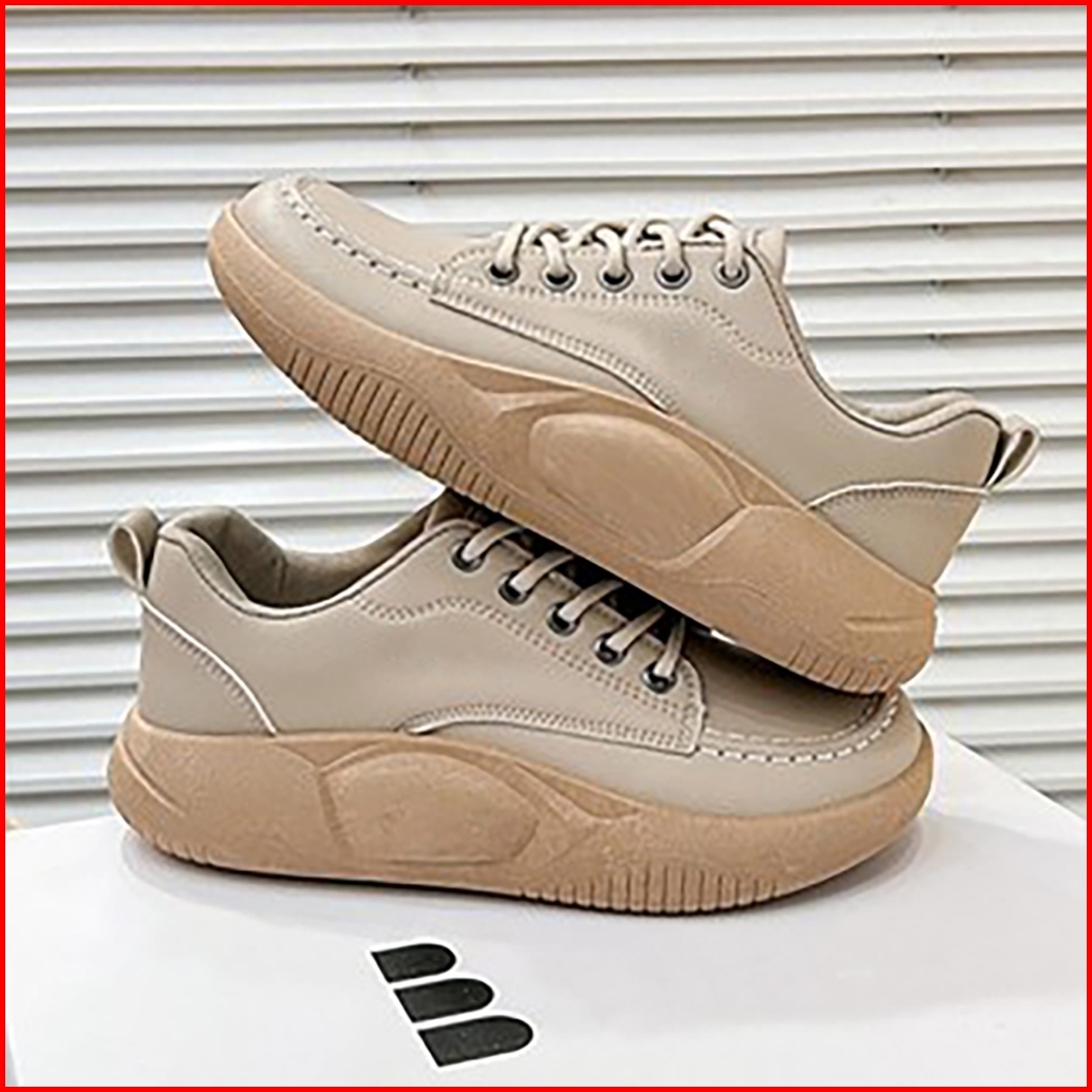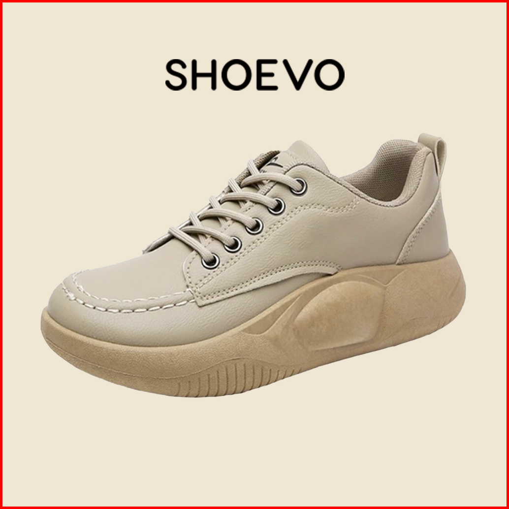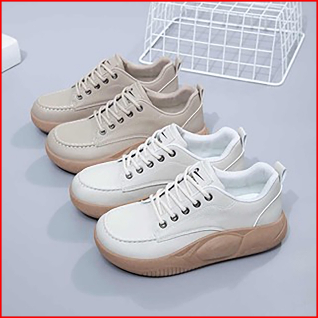 Shoevo Sneaker Wanita Women Shoes Korean Style Tumit Tinggi 3.5cm Krem Coklat St054