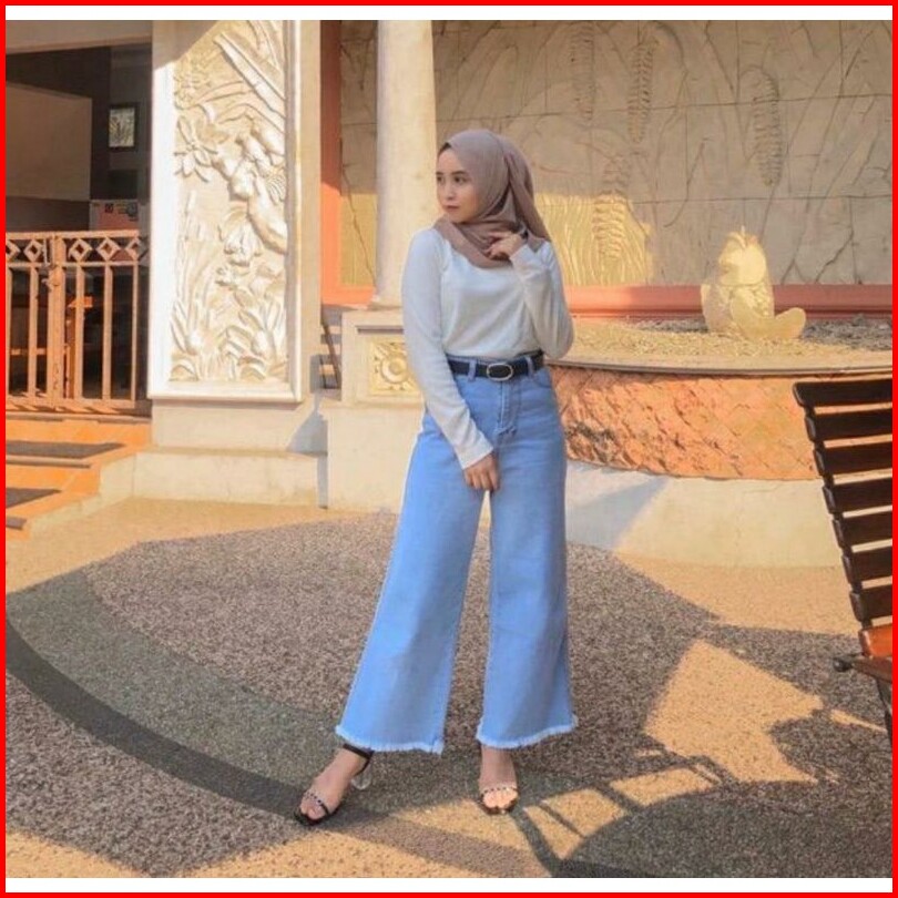 Celana Panjang Kulot Loose Jeans Rumbai Wanita 3016