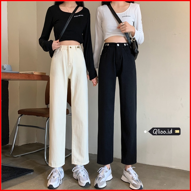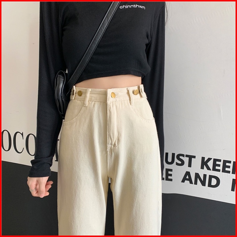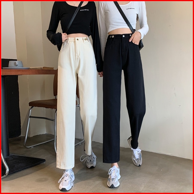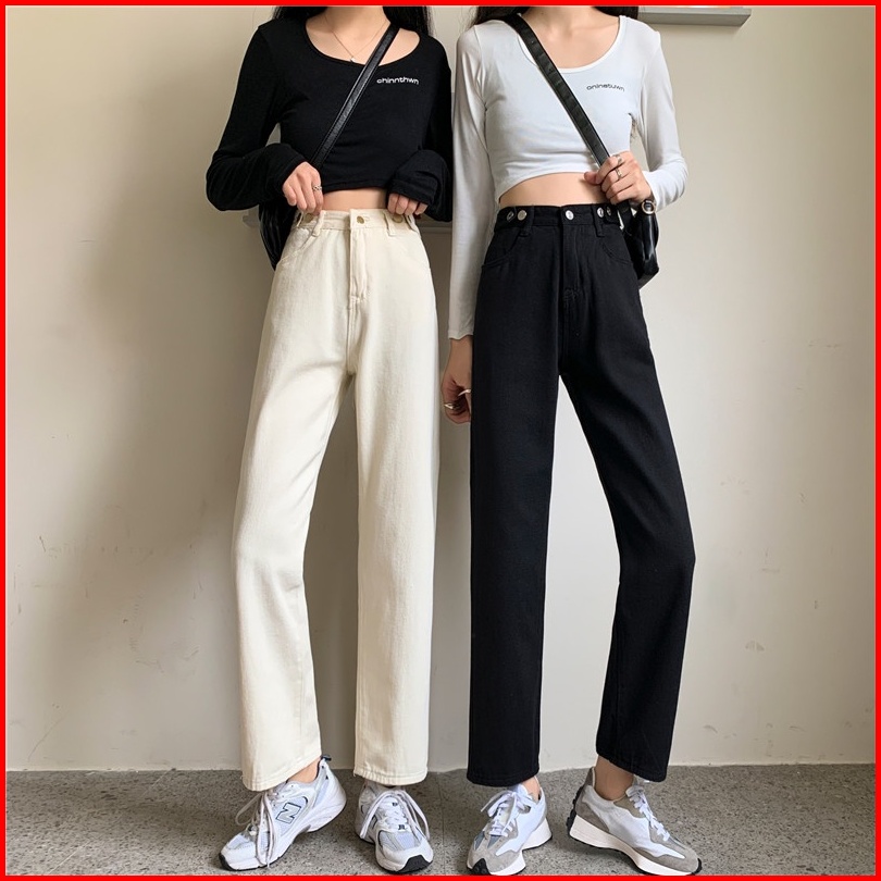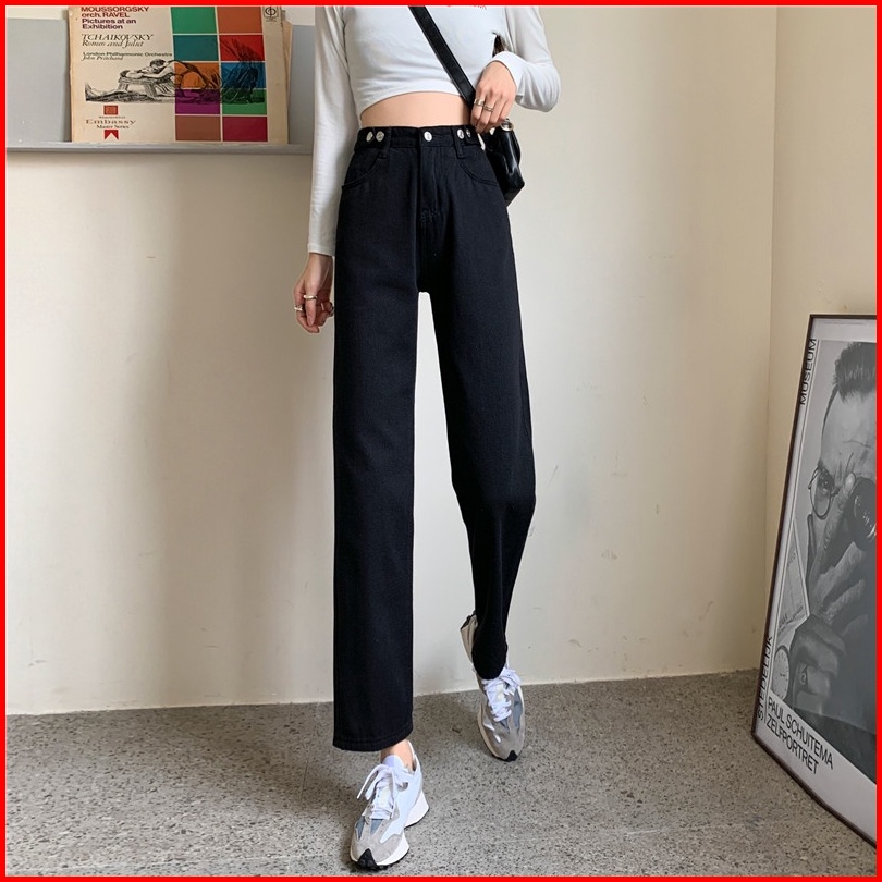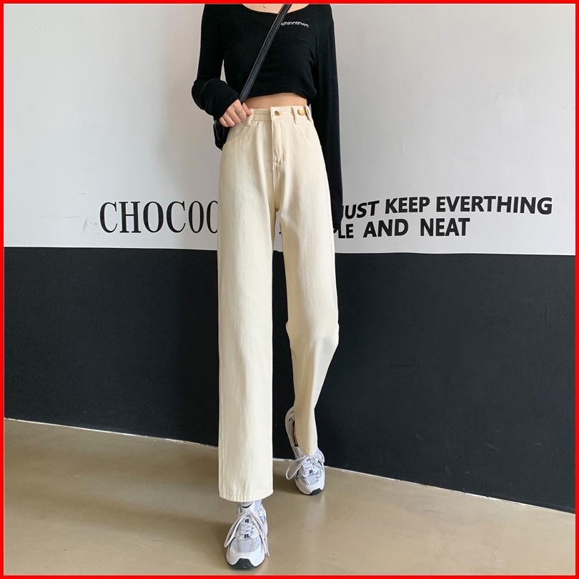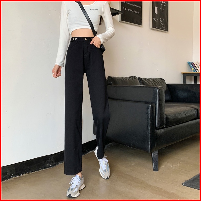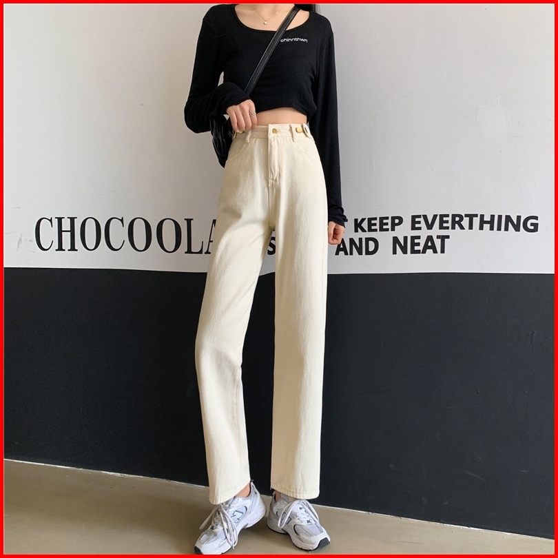 High Waist Celana Jeans Panjang Wanita Denim Straight Pants Korean Style