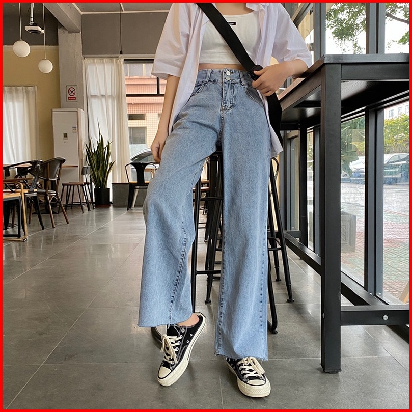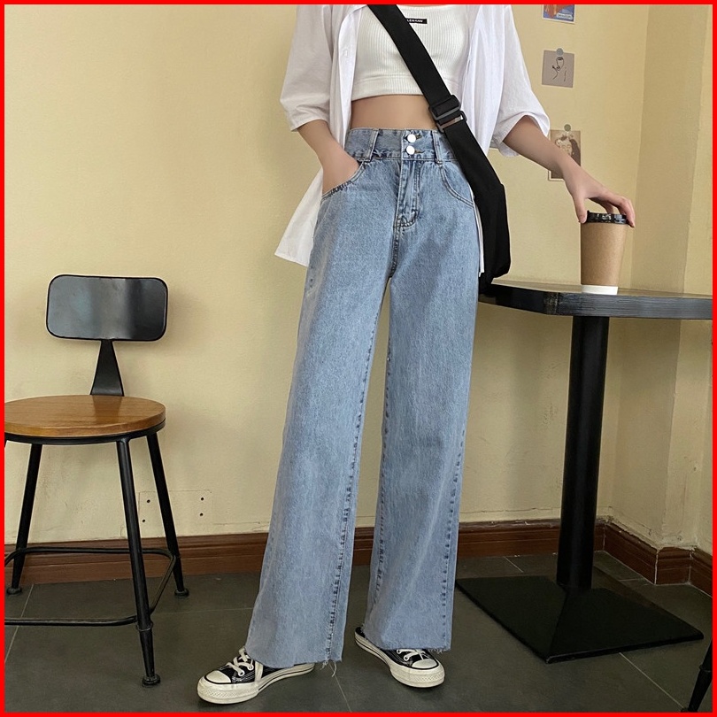 Celana Jeans Wanita High Waist Straight Pants Korean Style Celana Panjang