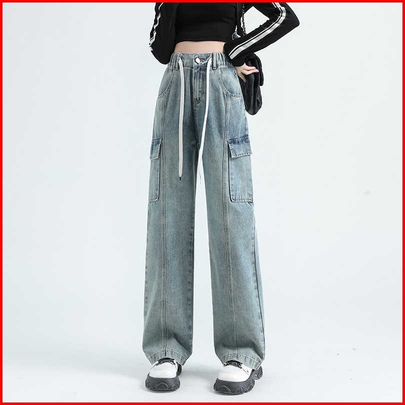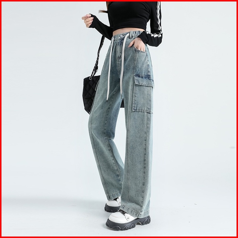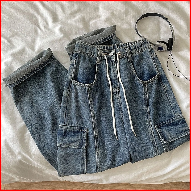 Cargo Jeans Wanita Celana Panjang Kekinian Baggy Loose Pants Highwaist Kulot