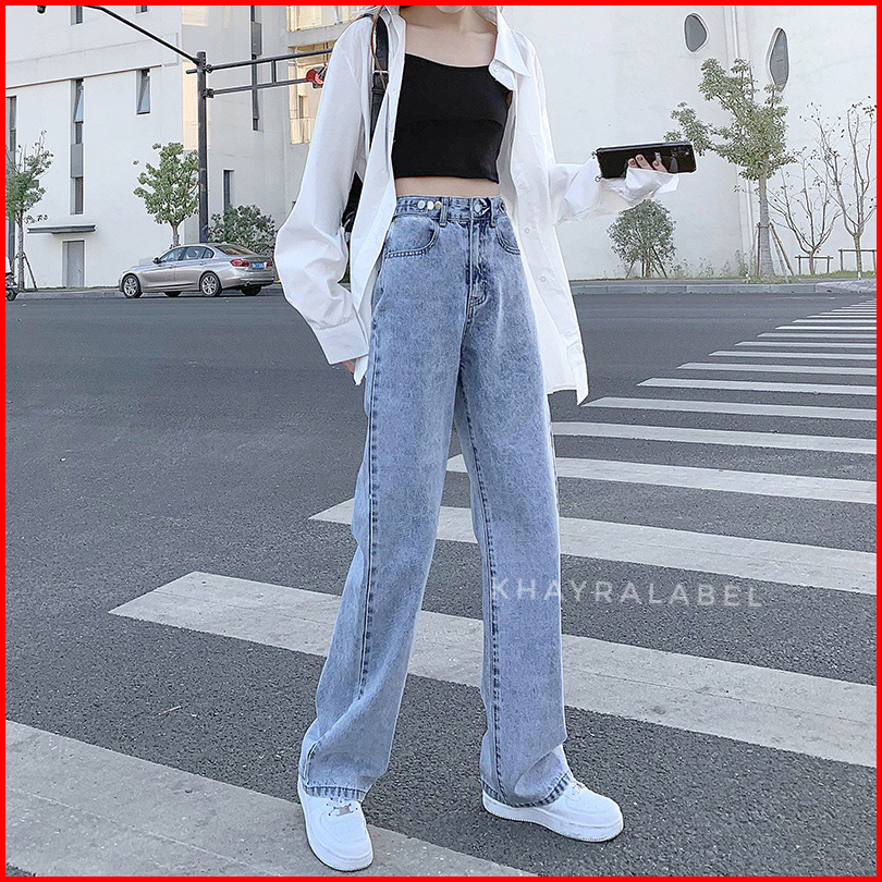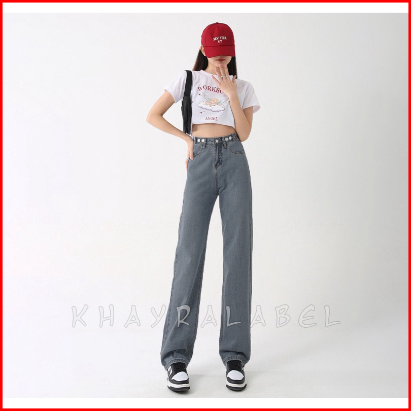 Khayralabel - Celana Highwaist Jeans Wanita Yang Dapat Disesuaikan