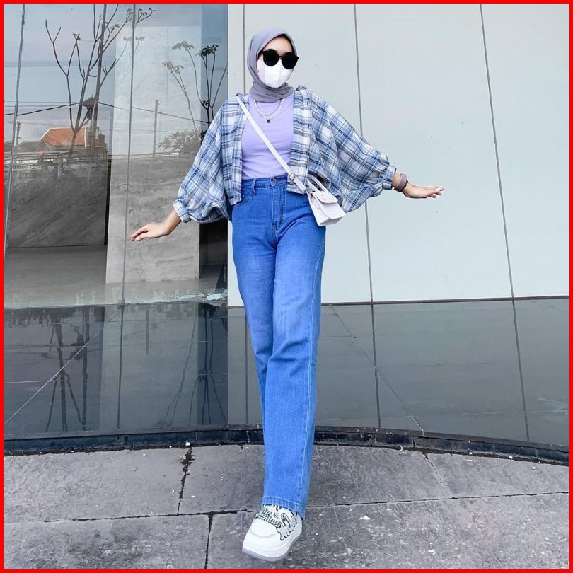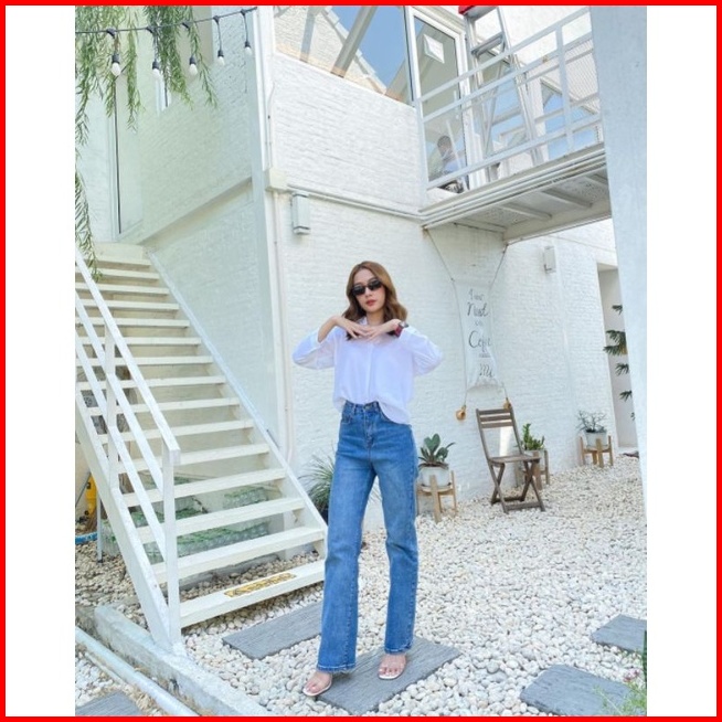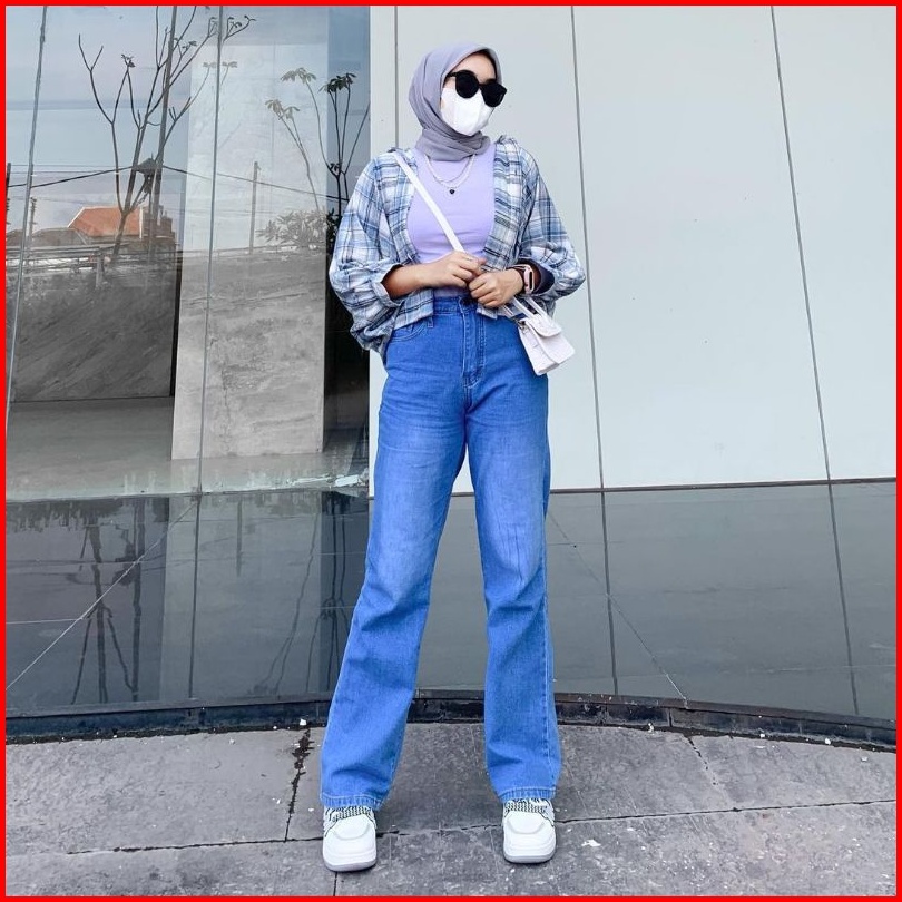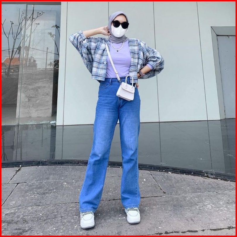 Medium Spray Loose Kulot Jeans Denim Blue Celana Hw Loose Jeans Highwaist Loose Kulot Jeans Wanita Cewek 27-34
