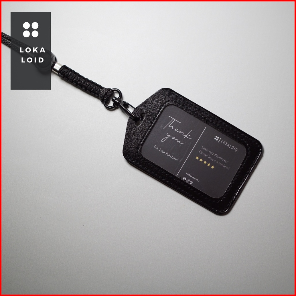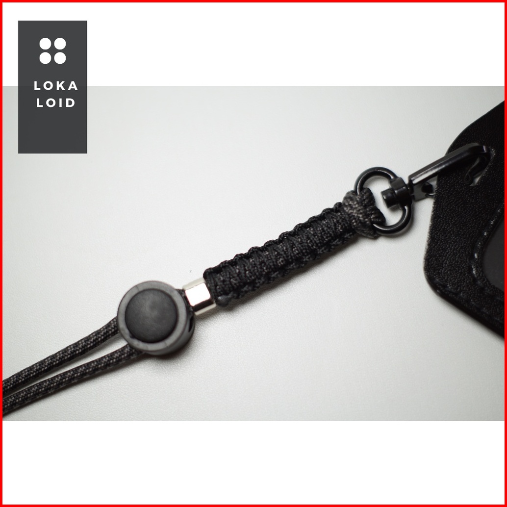 Lanyard Id Card Holder Tali Gantungan Nametag Kulit Motif Paracord Abu Strip Premium Design By Lokaloid