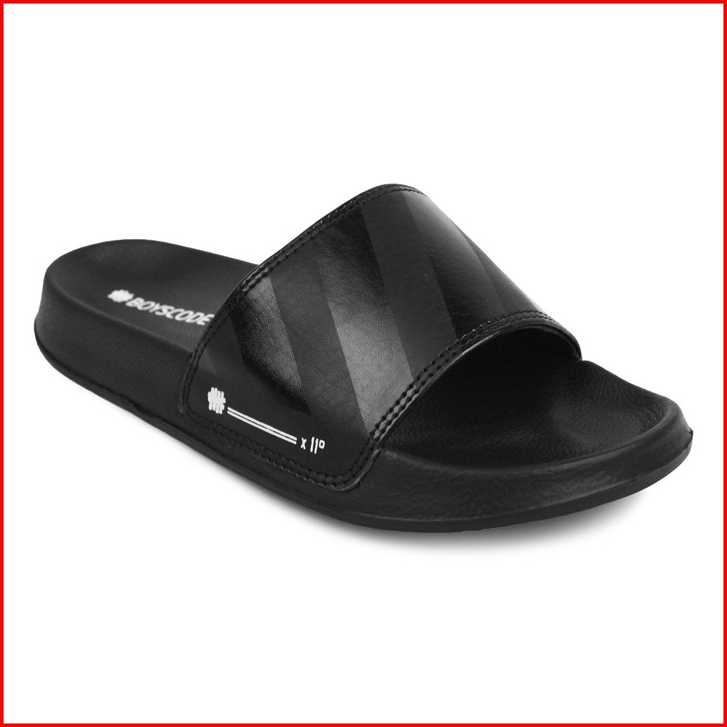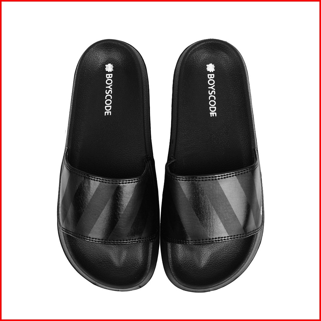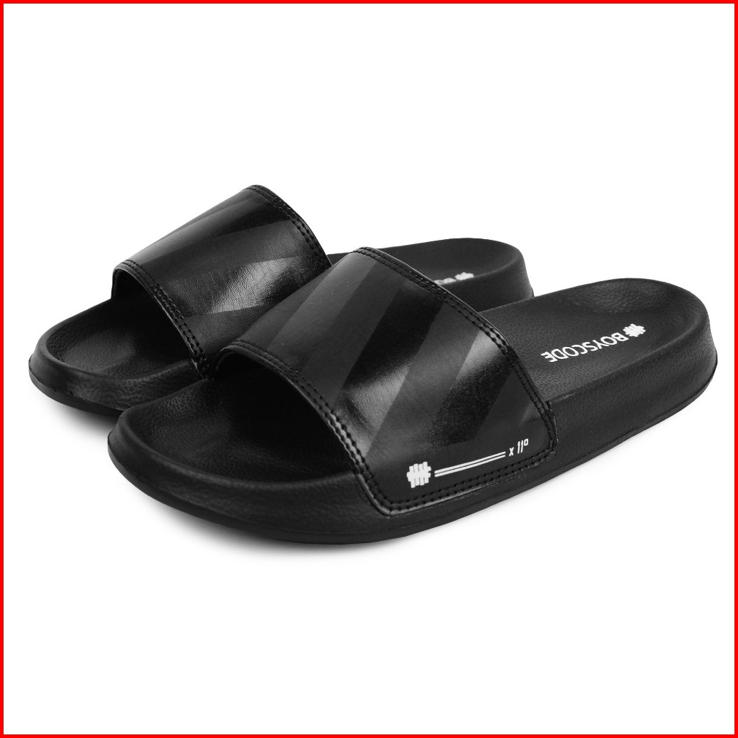Sendal Selop Karet Distro Kekinian Pria Wanita Boyscode Motif Zebra Hitam Fullblack