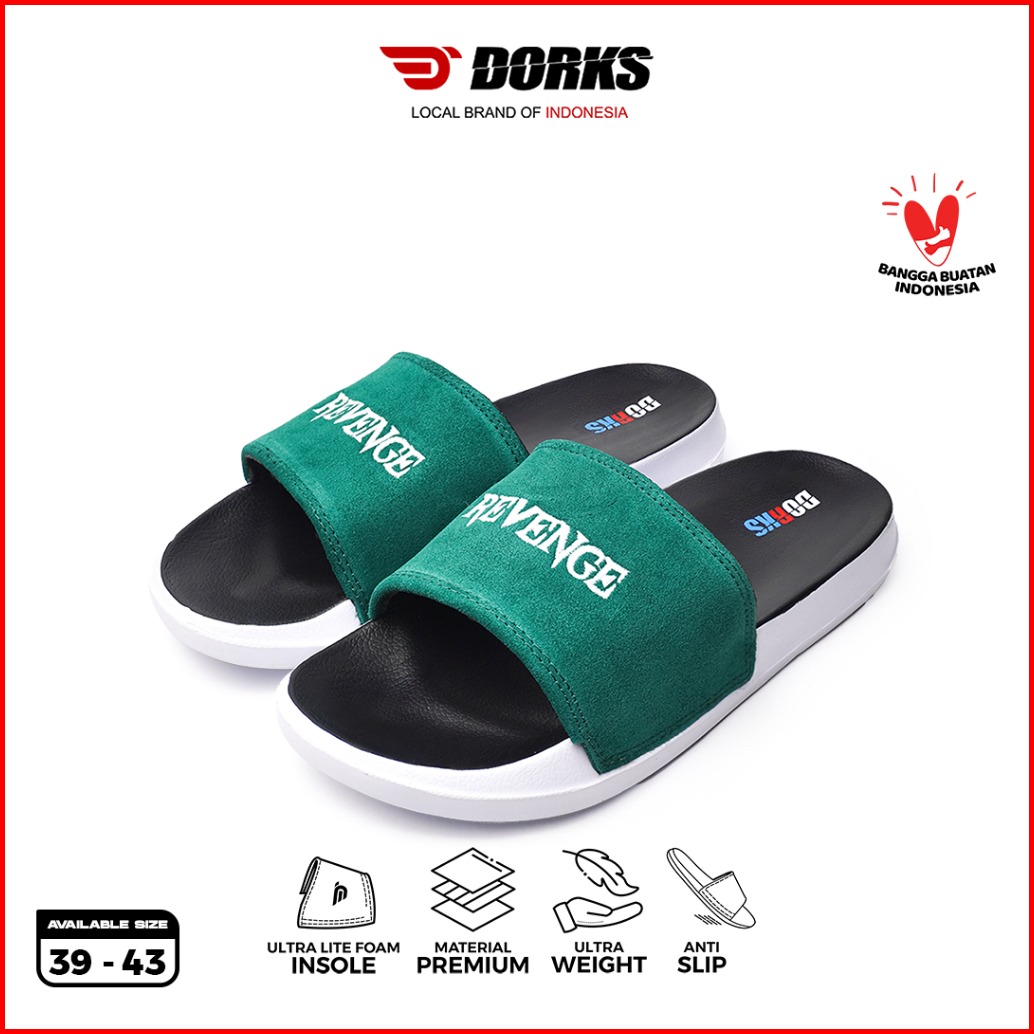 Dorks - Revenge Green Black Sandal Slop Casual Pria Wanita Sendal Slop Slipper Anti Licin