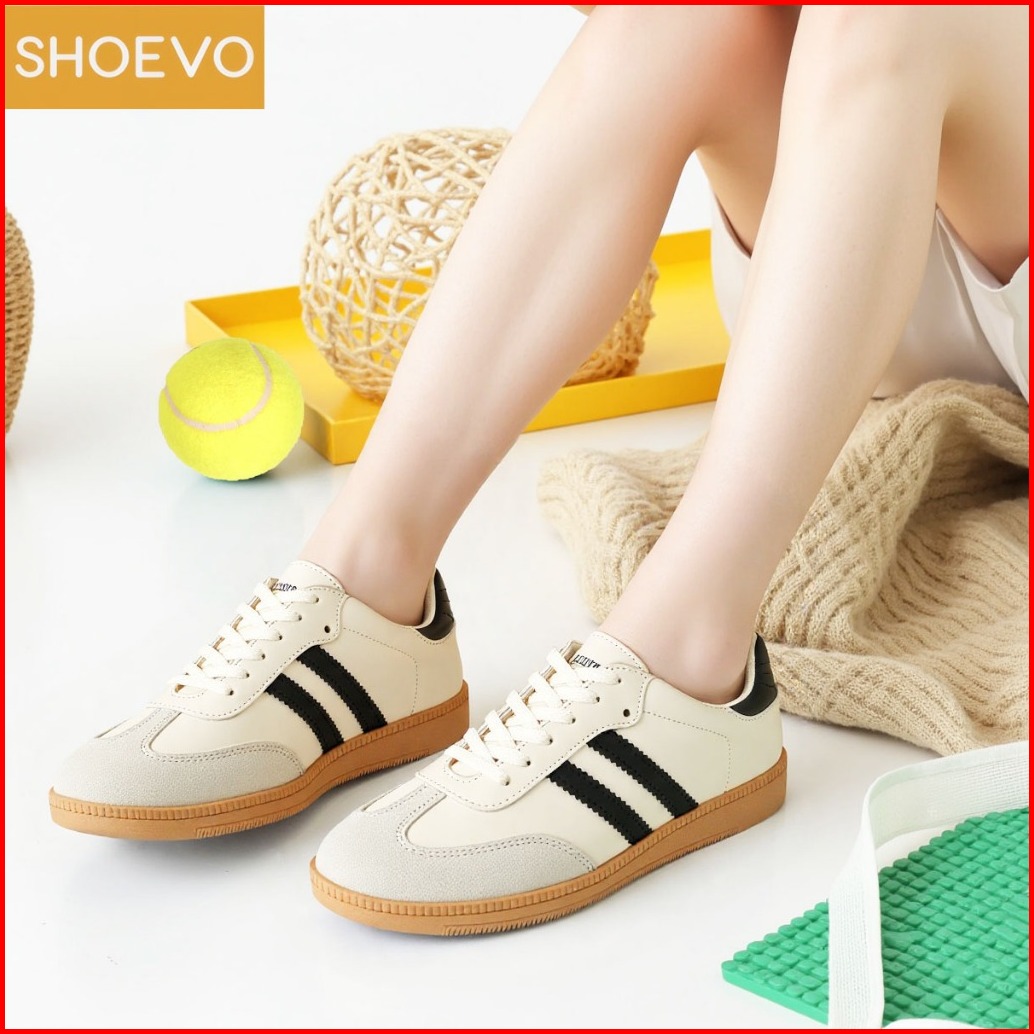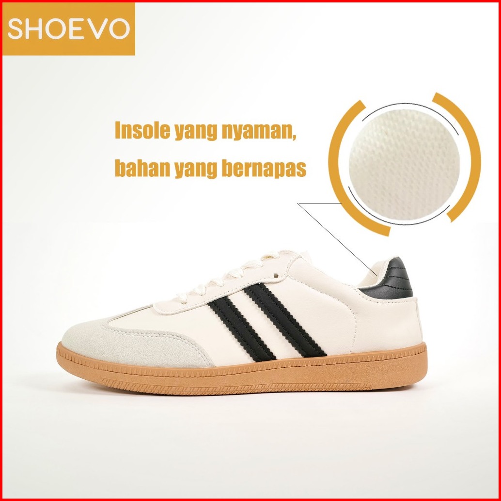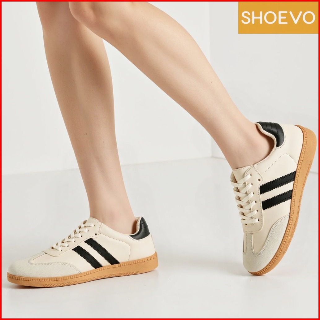 Shoevo Sepatu Wanita Sam-ba Sneakers Fashionable Hitam Cream Bahan Berkualitas Tinggi Bernapas Antibakteri Nyaman Untuk